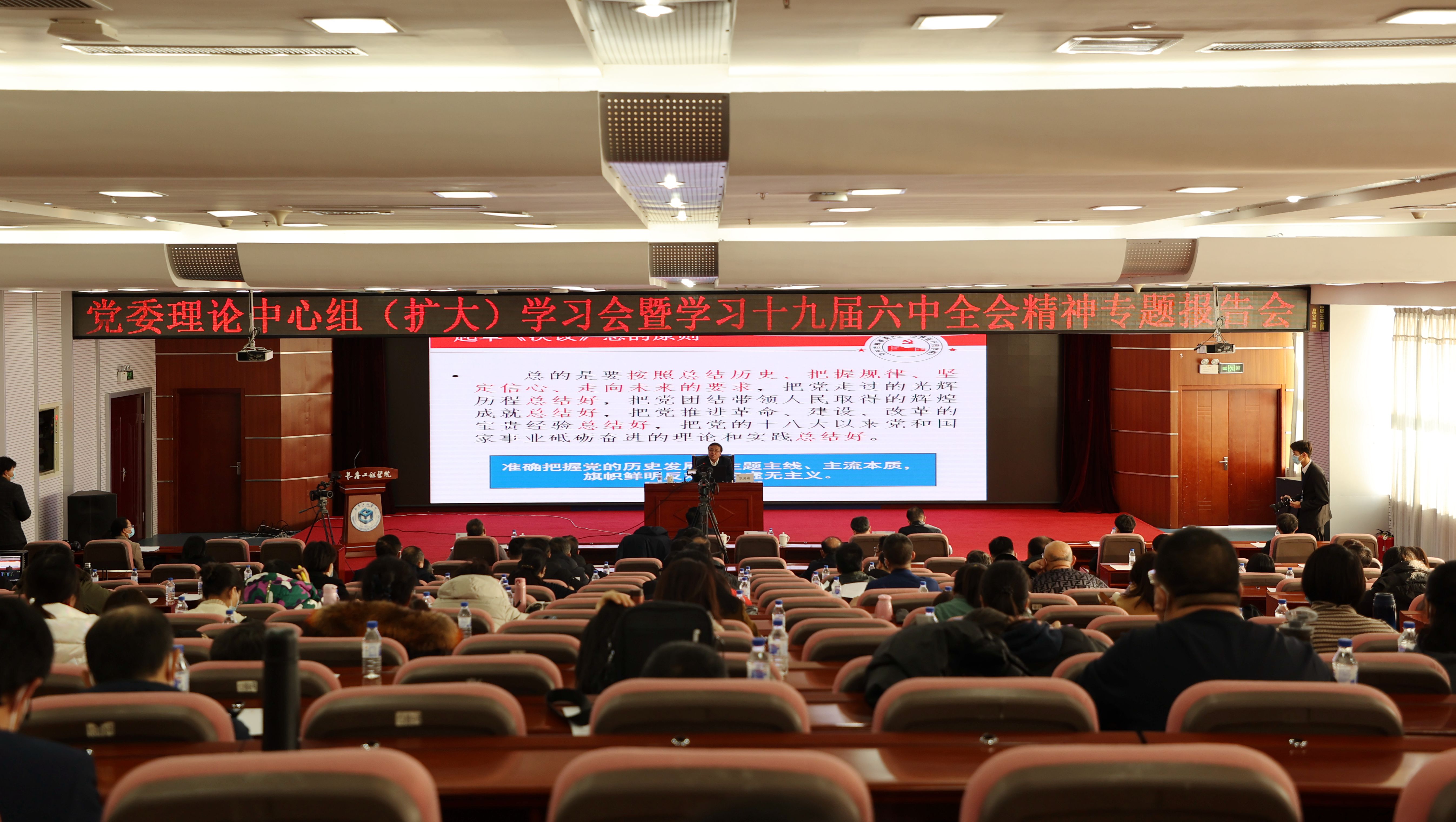 为深入学习贯彻党的十九届六中全会精神,11月24日,压球手机在线官网召开了党委理论学习中心组(扩大)学习会暨学习十九届六中全会精神专题报告会。压球手机在线官网邀请省委党校中共党史教研部主任耿洪彬教授做了题为《全面把握党的百年奋斗重大成就和历史经验---学习领会党的十九届六中全会精神》的专题报告。报告会在压球手机在线官网第三报告厅举行,压球手机在线官网领导陈权、刘兆国、杨永生、王延博参加了报告会。会议由陈权校长主持。