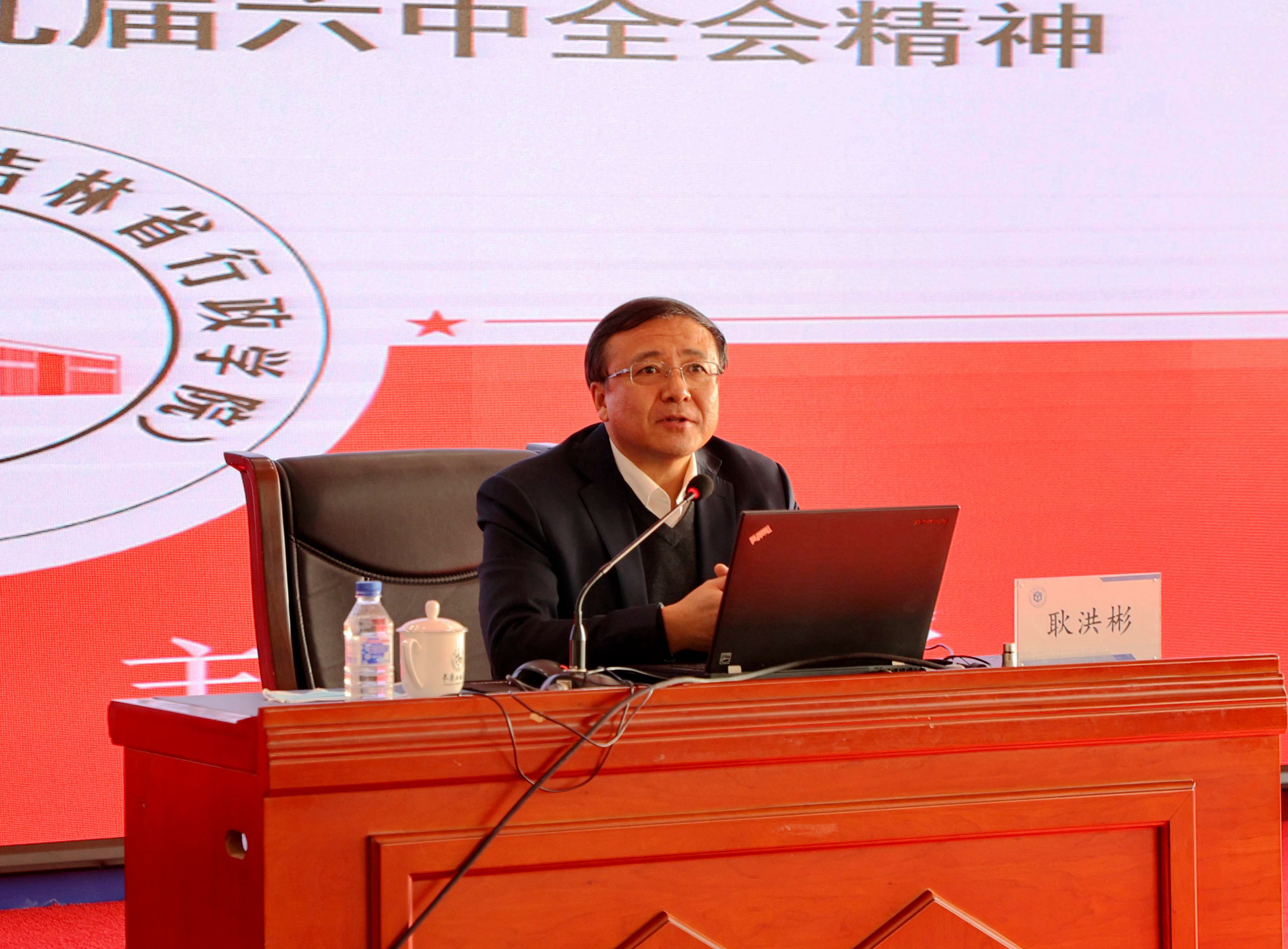 报告会上,耿洪彬教授从深入领会党的十九届六中全会召开的历史背景和重大意义;深入领会党的十九届六中全会《决议》的主要内容和核心要义;把学习贯彻党的十九届六中全会精神作为一项重要政治任务抓紧抓好等三个方面宣讲了党的十九届六中全会精神。耿洪彬教授在报告中指出,站在新的历史起点上,回顾过去,展望未来,全面总结党的百年奋斗重大成就和历史经验特别是改革开放40多年来的重大成就和历史经验,既有客观需要,也具备主观条件。在党的十九届六中全会上通过《中共中央压球(中国)党的百年奋斗重大成就和历史经验的决议》是在建党百年历史条件下开启全面建设社会主义现代化国家新征程、在新时代坚持和发展中国特色社会主义的需要;是增强政治意识、大局意识、核心意识、看齐意识,坚定道路自信、理论自信、制度自信、文化自信,做到坚决维护习近平同志党中央的核心、全党的核心地位,坚决维护党中央权威和集中统一领导,确保全党步调一致向前进的需要;是推进党的自我革命、提高全党斗争本领和应对风险挑战能力、永葆党的生机活力、团结带领全国各族人民为实现中华民族伟大复兴的中国梦而继续奋斗的需要。