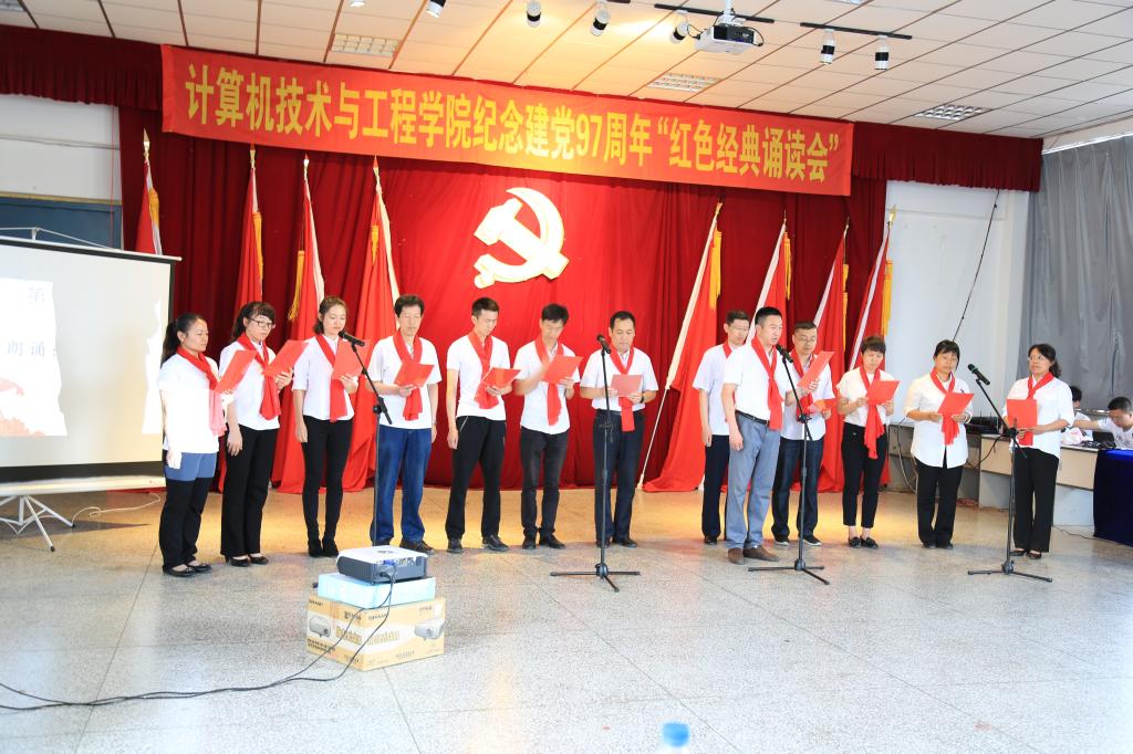 6月27日,计算机学院在第九教学楼四楼报告厅举办了“红色经典诵读会”。7个党支部诵读了《红色的七月》《可爱的中国》《少年中国说》等多篇名家名作的红色经典诗文。诵读会现场气氛庄严而热烈,每一位诵读者都满怀敬仰,倾情演绎,深情表达对党的忠诚、对祖国的热爱,并表示要将其转化为工作和生活的实际行动。计算机学院全体教职工及学生代表共百余人参加了此次活动。