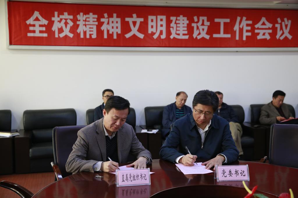 会上,压球手机在线官网党委书记潘福林与直属党组织书记代表现场签订2018年精神文明建设工作责任书和意识形态工作责任书。