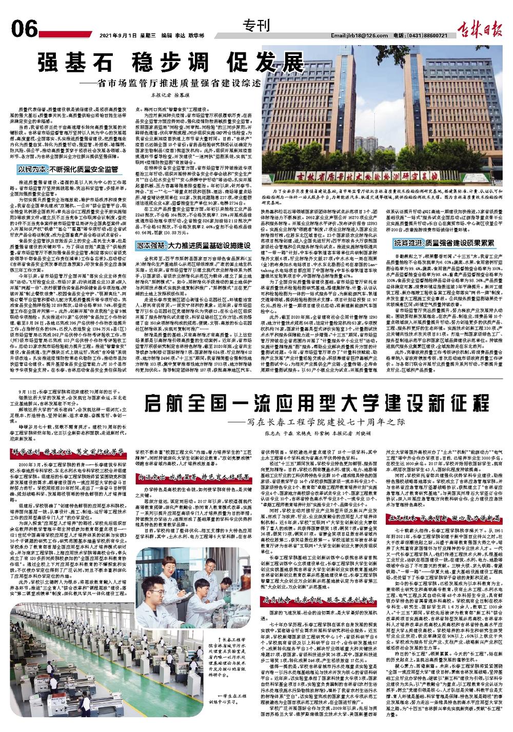 在我校70周年校庆之际,9月1日,《吉林日报》第6版以《启航全国一流应用型大学建设新征程——写在压球手机在线官网建校七十周年之际》为题报道了我校教育事业改革发展成果。