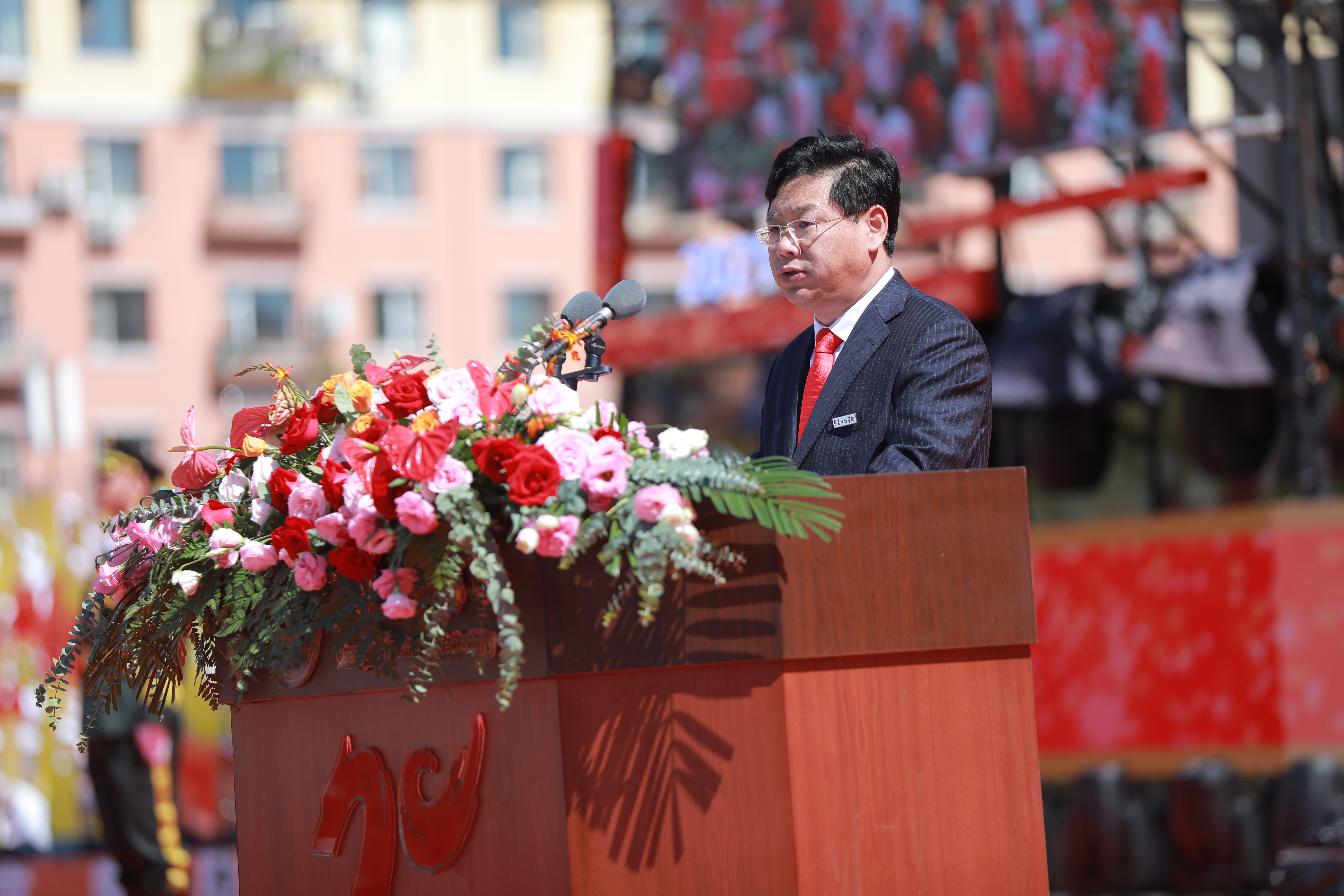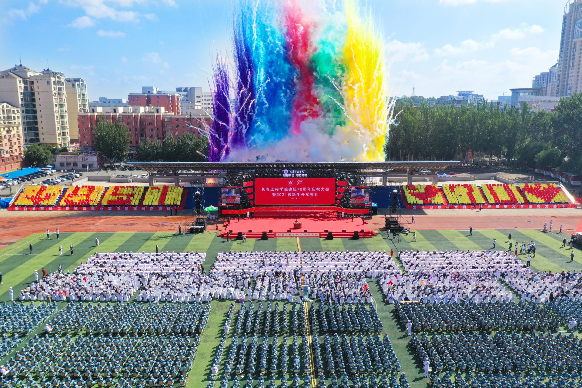 9月11日,压球手机在线官网建校70周年庆祝大会暨2021级新生开学典礼在湖西校区体育场隆重举行。