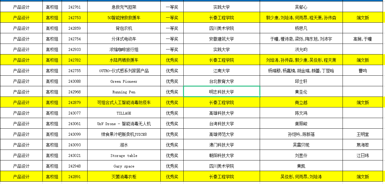 该大赛产品设计赛项共设一等奖5项,中国大陆地区获得3项,其余2项被亚洲设计名校台北实践大学获得。