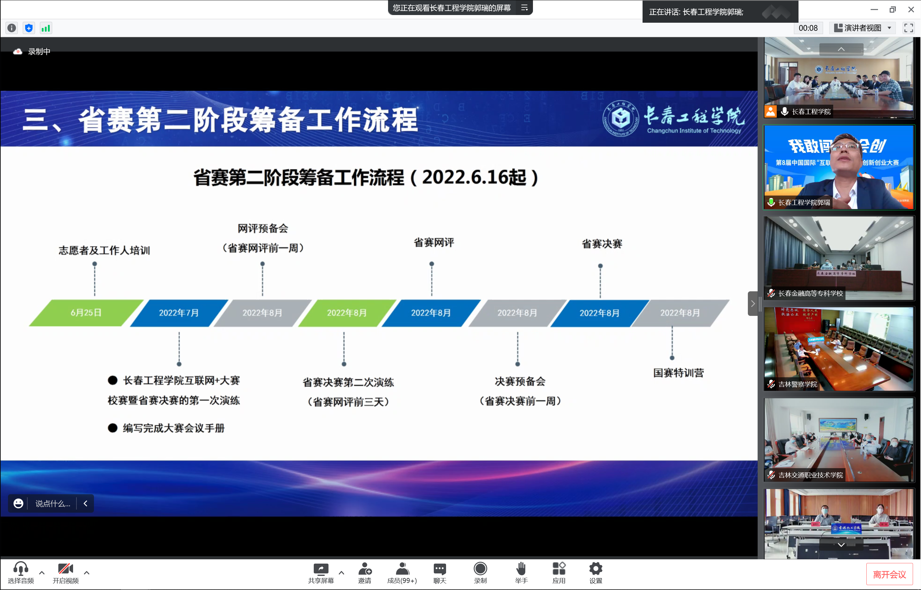 我校作为本届大赛的承办高校,汇报了省赛筹备情况及校赛推进工作。吉林省教育厅有关人员、赛事联络员及各高校创新创业教育主管部门负责人参加了本次会议。