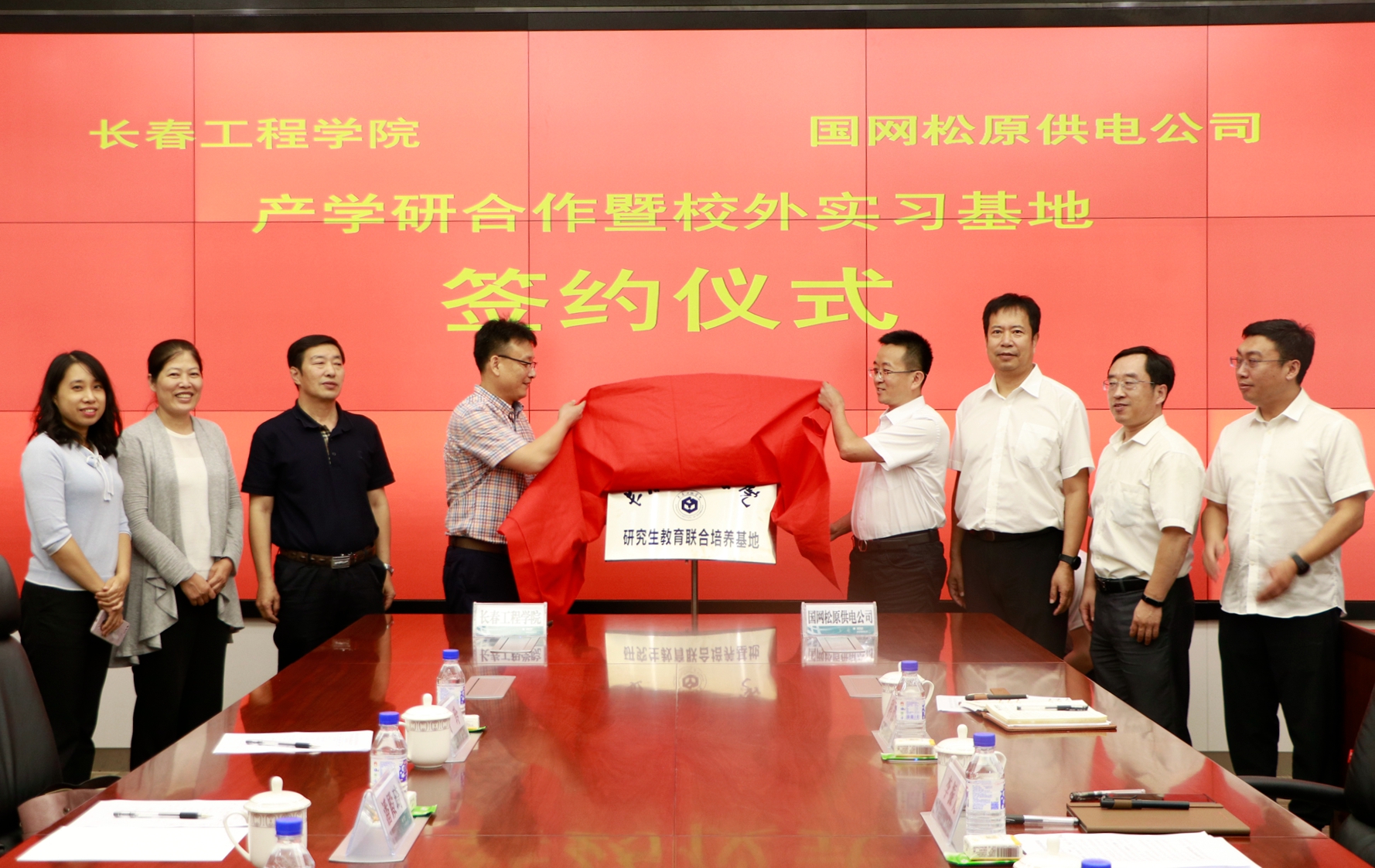 校企共建研究生教育联合培养基地签约暨揭牌仪式在国网松原供电公司举行,王朝勇副校长和国网松原供电公司总经理李振元一同为“压球手机在线官网研究生教育联合培养基地”揭牌。研究生学院院长潘殿琦和国网松原供电公司总工程师董刚分别代表校企双方签署校企联合培养研究生校外实践基地协议。