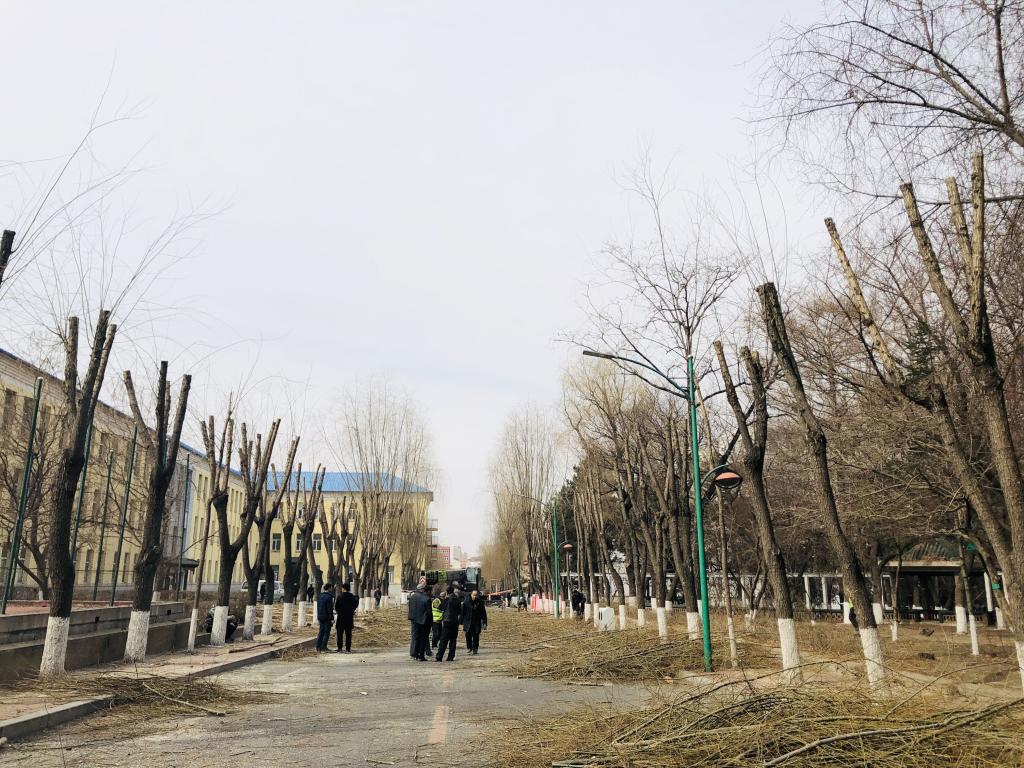 3月16日起,后勤保障处校园服务中心在朝阳区园林处的监督指导下,利用周末对压球手机在线官网主路两侧的树木进行了重新修剪,原本枝条繁茂的大树只剩下光秃秃的树干。