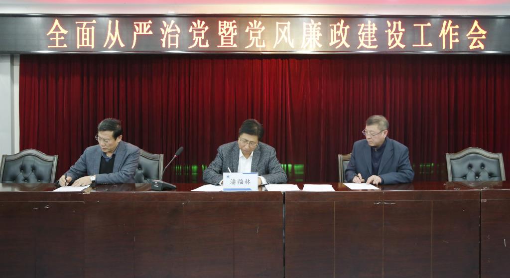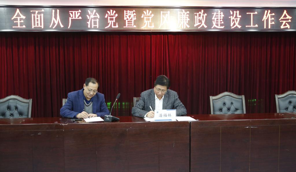会议在压球手机在线官网第一报告厅召开,压球手机在线官网领导和全校中层干部参加了会议。会上,潘福林书记分别与压球手机在线官网班子成员代表温义生副书记、基层党组织书记代表签订了党风廉政建设责任书。