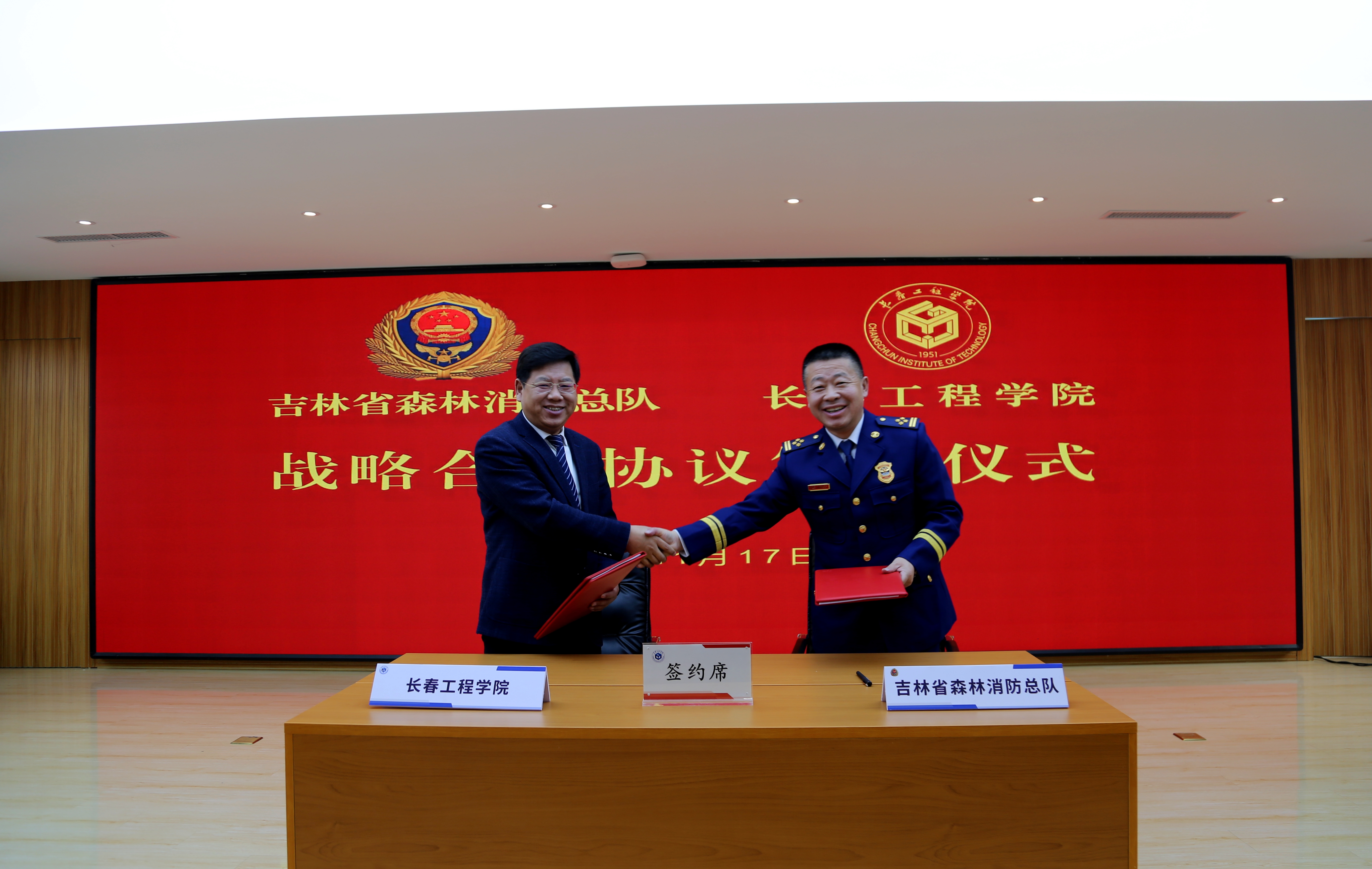 11月17日上午,吉林省森林消防总队、压球手机在线官网战略合作协议签署仪式在我校第一报告厅举行。吉林省森林消防总队总队长刘根善、政治委员任立新、政治部主任赵西州,压球手机在线官网校长陈权、副校长许骏出席仪式。