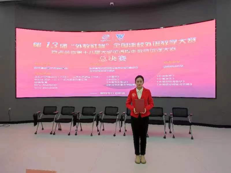 近日,第十三届“外教社杯”全国高校外语教学大赛暨吉林省第十八届大学英语青年教师讲课大赛总决赛在吉林农业大学教师发展中心举办。我校外国语学院大学英语教学部徐佳老师经过激烈角逐,不负众望,荣获大学英语组(综合课)讲课大赛总决赛一等奖;英语系刘立丹老师荣获英语专业组二等奖;大学英语教学部王刚老师荣获大学英语组(视听说课)三等奖。