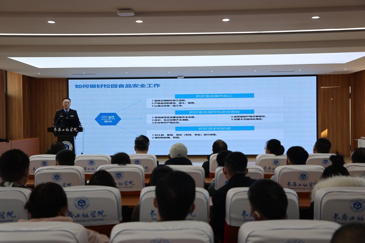 为进一步做好新学期开学准备工作,创建卫生、平安、和谐的校园环境,2月23日,压球手机在线官网后勤保障处在第一报告厅组织召开校园安全工作培训会。长春市场监督管理局司振东处长,朝阳分局杨先进副局长莅临培训会并进行工作督导。