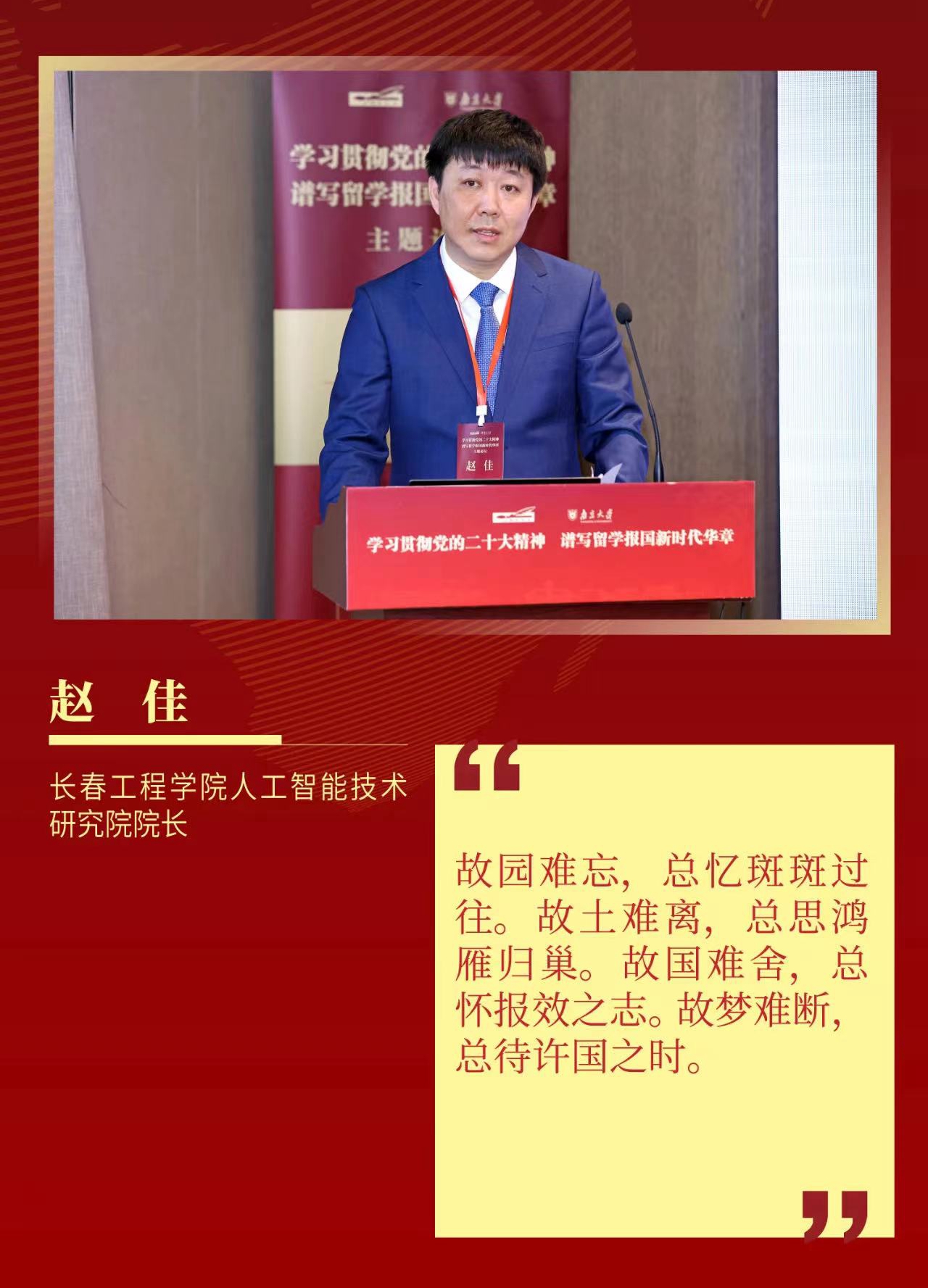 主题论坛结束后,在吉林省委统战部、吉林省欧美同学会(吉林省留学人员联谊会)主办的全省留学人员“智力支持吉林振兴 留学谱写报国华章”座谈会上,赵佳教授作了题为“遍育桃李哺芳华 一片丹心献故园”的主题报告。赵佳教授有决心把爱国的理想、爱乡的情怀、爱校的志向,统一到自己治学从教、立德树人的工作中。在压球手机在线官网党委的领导下,在统战旗帜的指引下,以百倍的热情铆足干劲,以万丈的豪情力争上游,为把我校建设成国内一流应用型大学,再续新篇,再创辉煌。