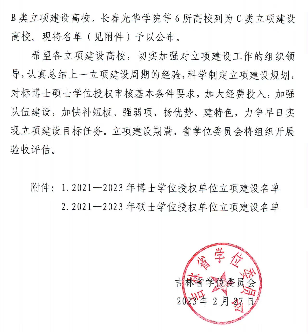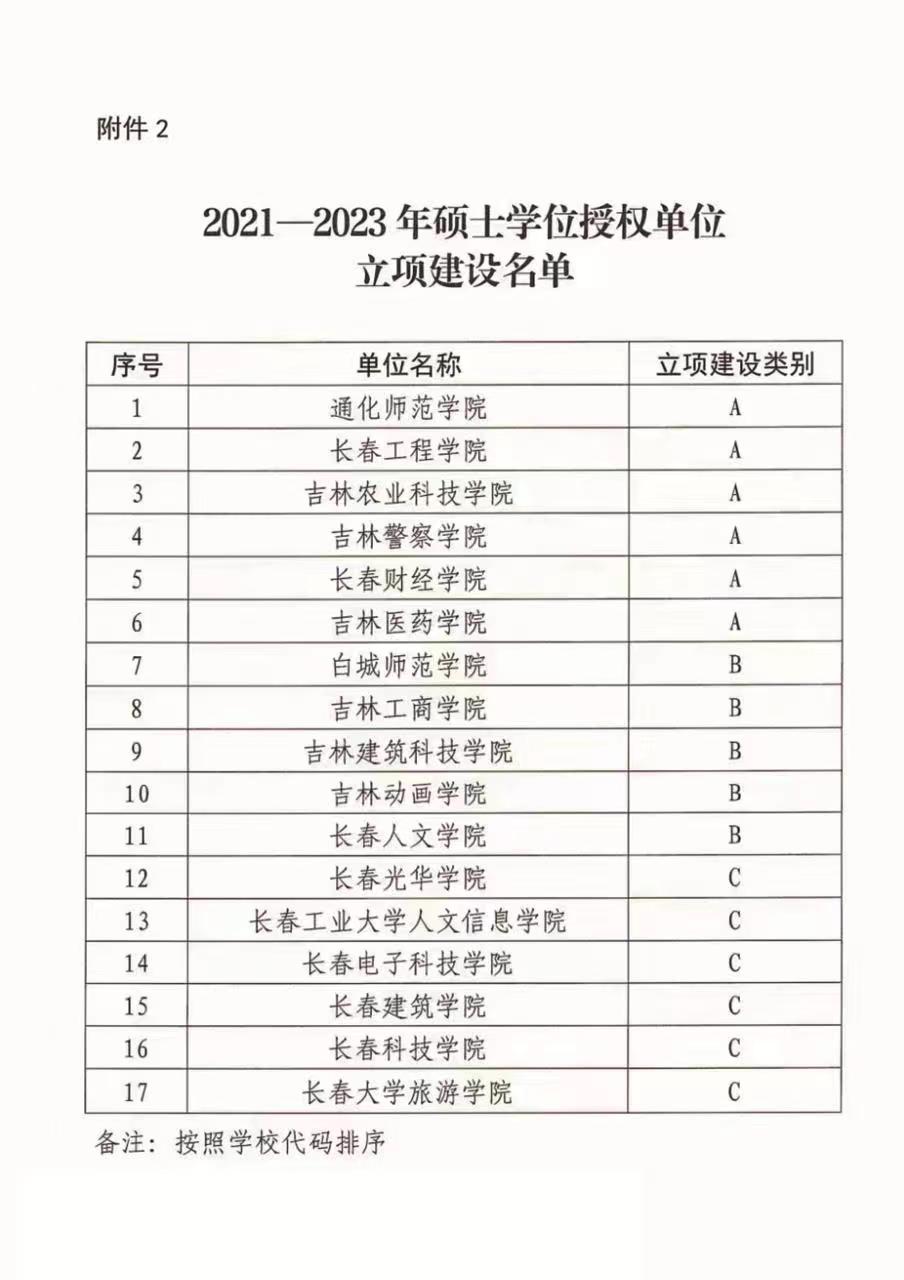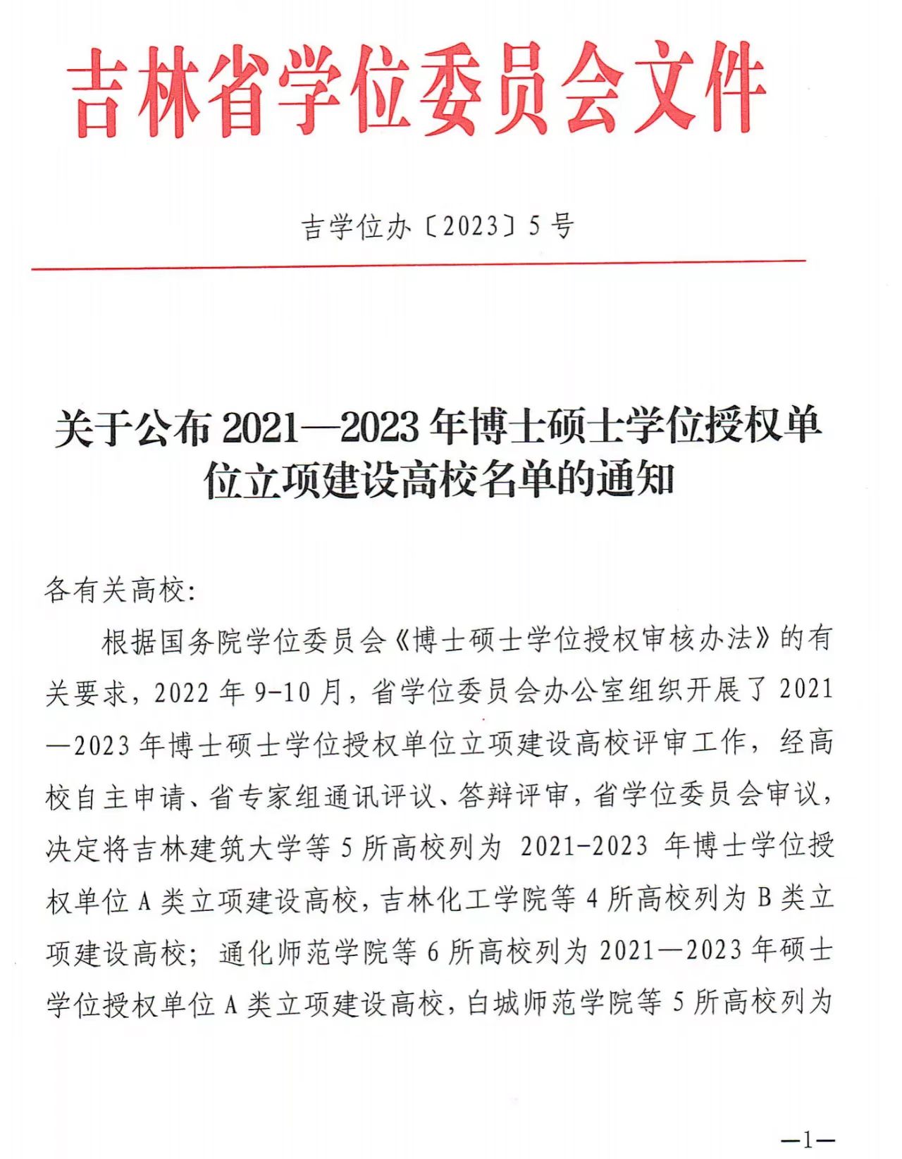 近日,吉林省学位委员会下发《压球(中国)公布2021-2023年博士硕士学位授权单位立项建设高校名单的通知》,我校成功获批硕士学位授权单位A类立项建设高校。我校已经连续2次获批硕士学位授权单位A类立项建设高校。