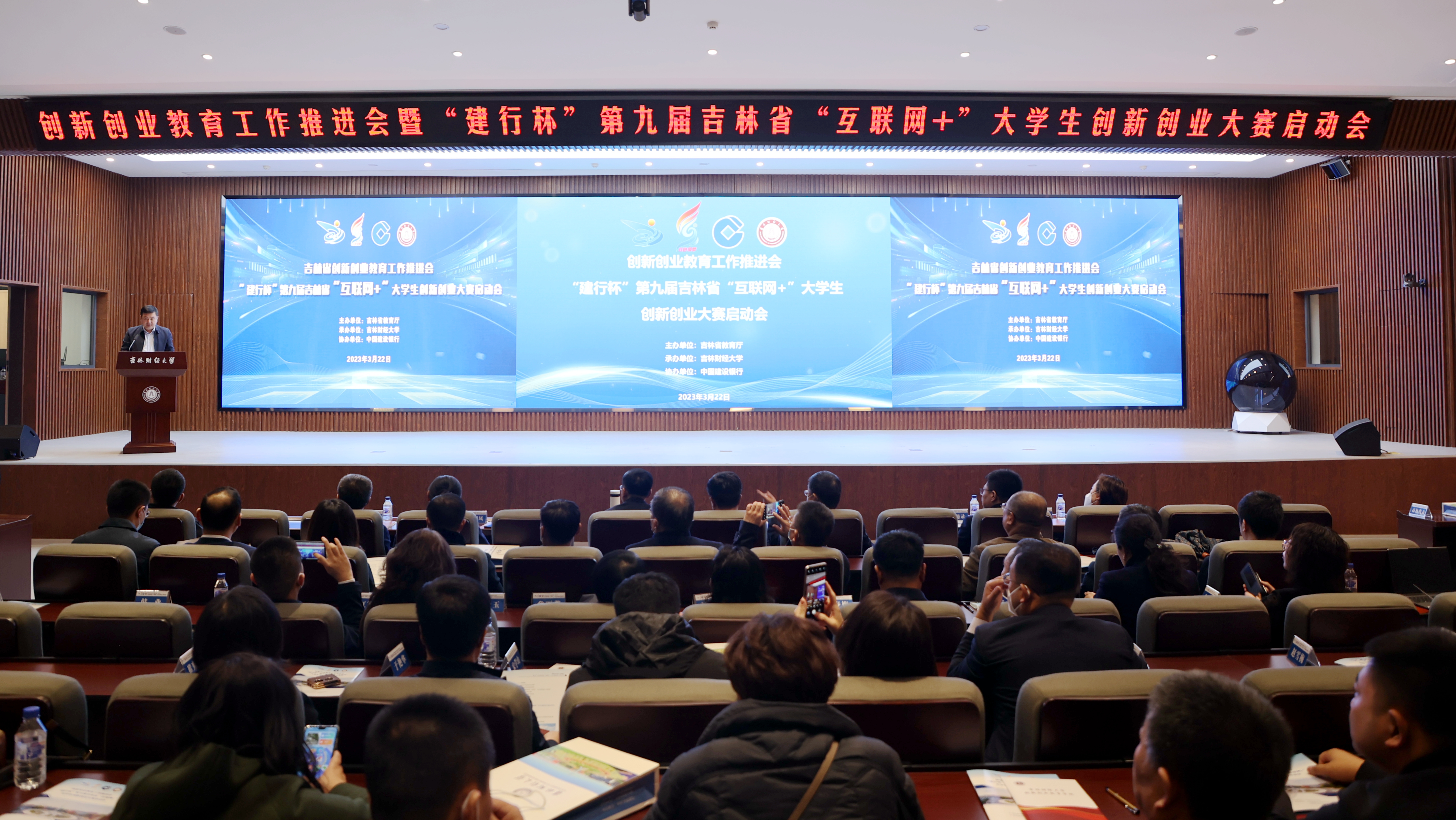 3月22日上午,吉林省创新创业教育工作推进会暨“建行杯”第九届吉林省“互联网+”大学生创新创业大赛启动会在吉林财经大学召开,我校副校长张邦成受邀参会并作经验交流分享。吉林省教育厅副厅长刘学军在会上作工作部署,会议由吉林省教育厅高教处处长曾繁明主持。