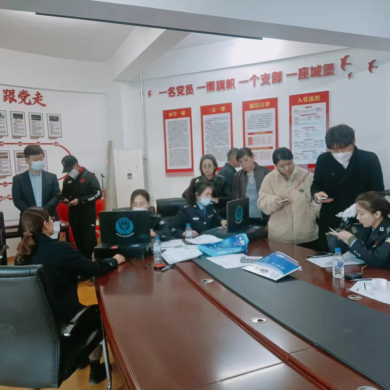 出入境管理局设置了四个办理点,忙碌而有序地完成复印身份证、输入信息、照相、收费等流程,总计为200余名师生完成证件的办理,并热情解答了办理证件的相关问题。