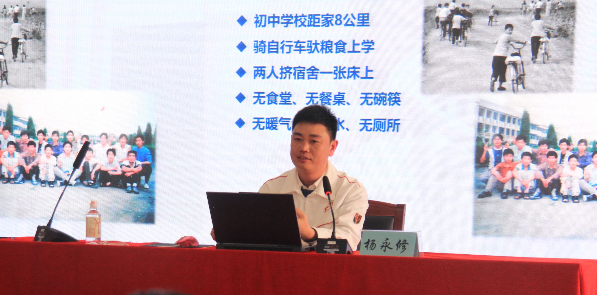 杨永修以“技能成才,强国有我”为主题,从磨练意志、找准定位、锤炼技能、把握机会、创新创造、思想蜕变六个方面,结合自身经历,分享了从努力求学到高考失利、不弃梦想,再到潜心钻研,成为卓越工程师的成长之路。朴实无华的语言、循循善诱的讲授方式,赢得了现场师生的阵阵掌声。