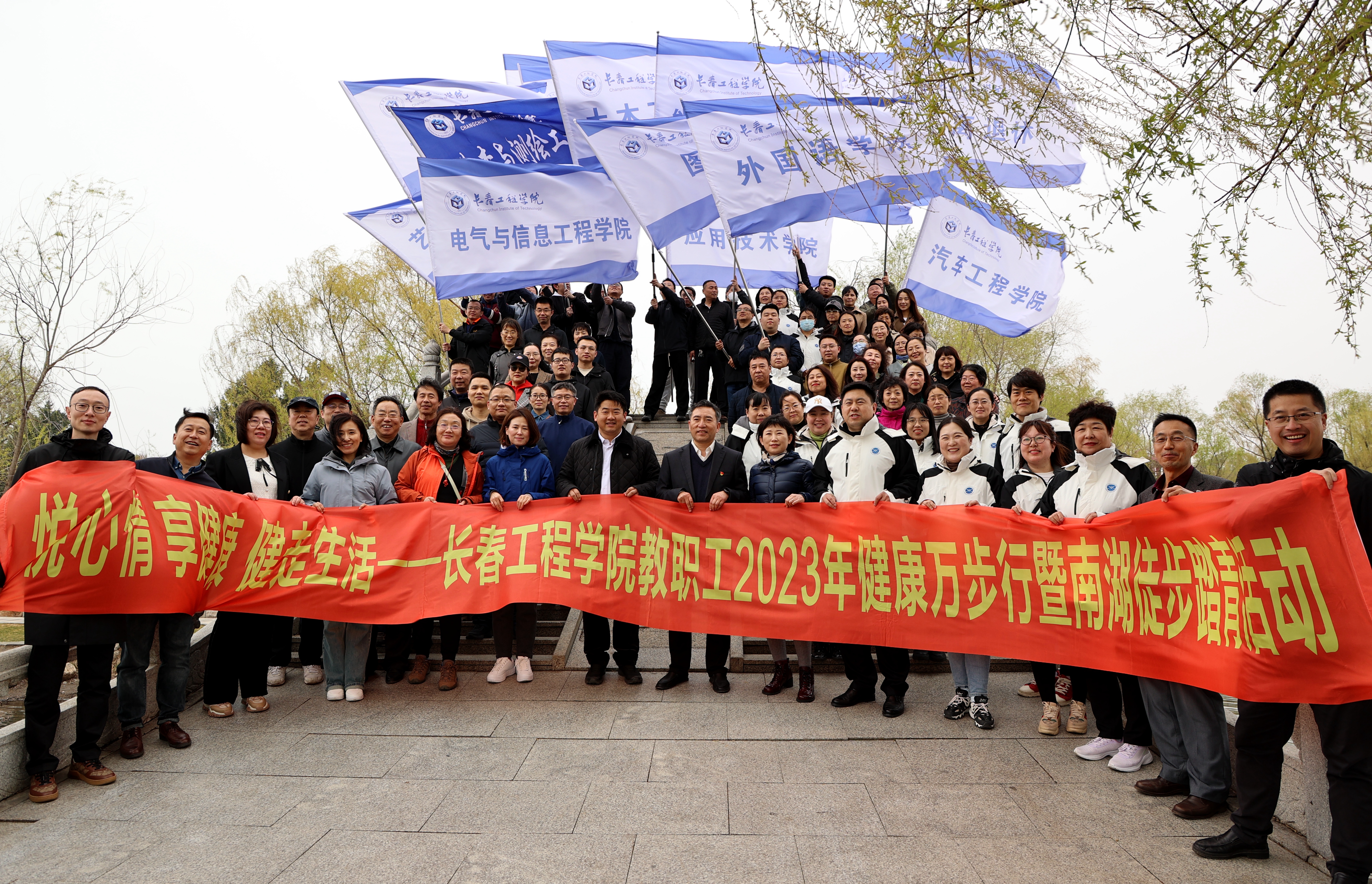 启动仪式后,近800名教职工参加了南湖徒步踏青活动。大家精神抖擞、步伐稳健,欣赏着南湖美丽的景色,感受着健步行带来的快乐,交流着对健康生活的感悟,在南湖之畔形成了一道靓丽的风景线。
