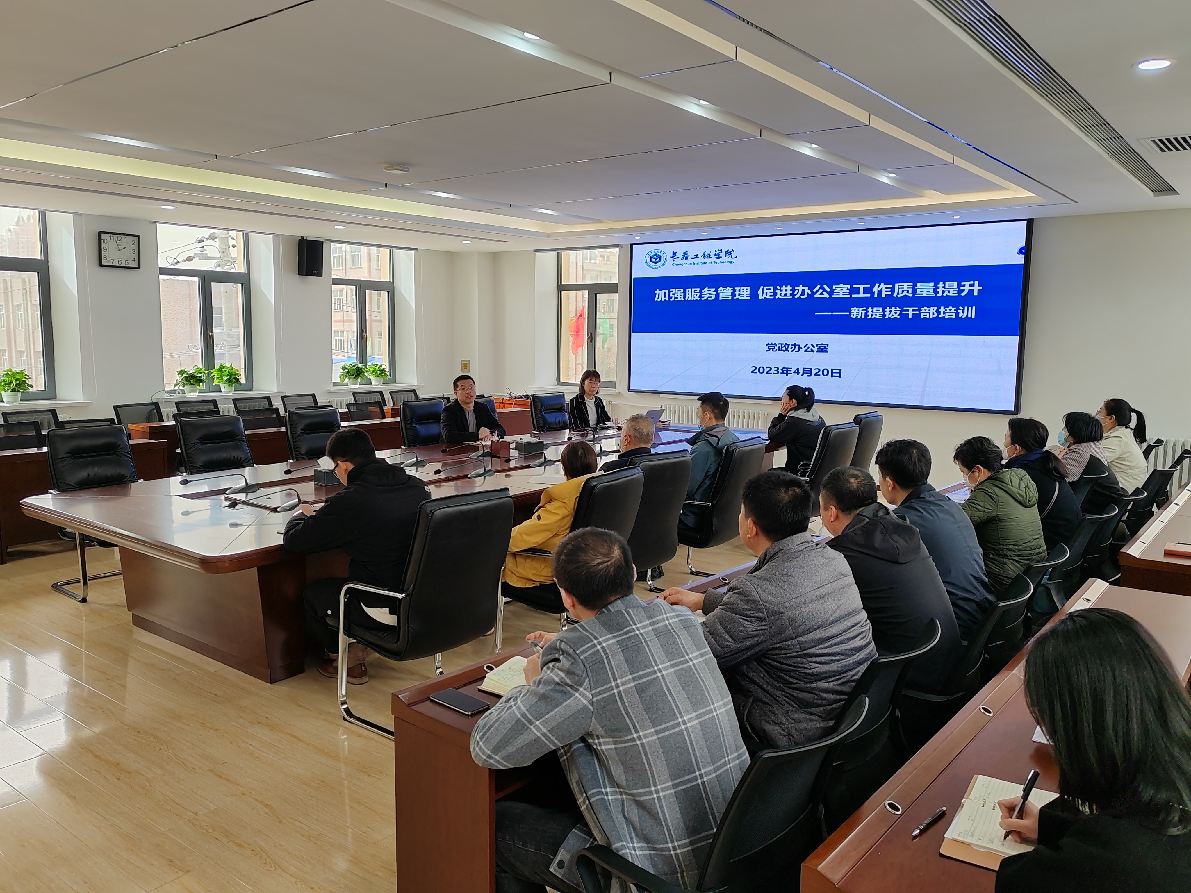 党政办公室召开新提拔的办公室主任、秘书岗科级以上干部培训会,党政办公室主任于淼、副主任张子婵以“加强服务管理,促进办公室能力质量提升”为主题进行了系统的培训。
