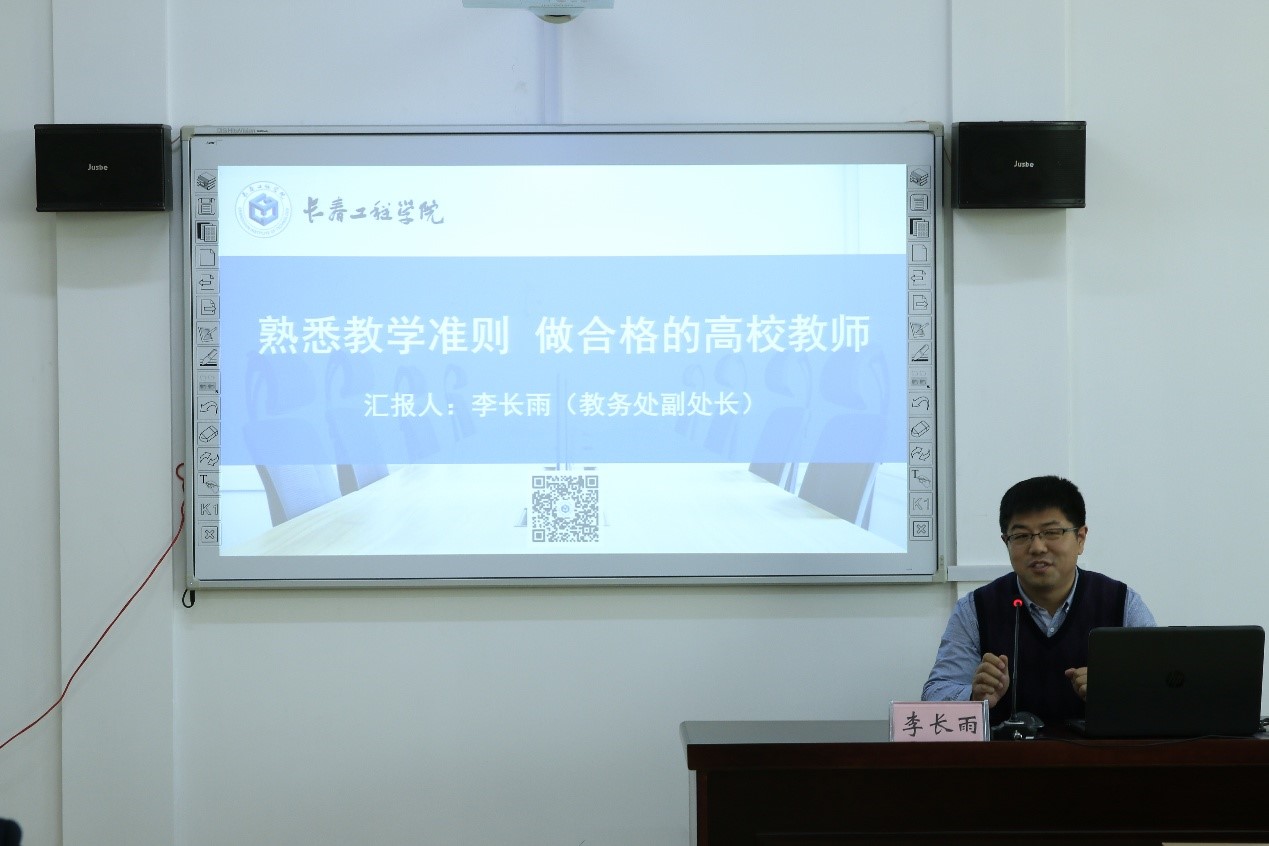 教务处副处长李长雨以“熟悉教学准则做合格的高校教师”为题,介绍了压球手机在线官网本科教学总体情况、教务处机构职能、教学规章制度及基本要求等,从教师如何站上讲台、站好讲台、站稳讲台等方面与新教师进行了交流分享。