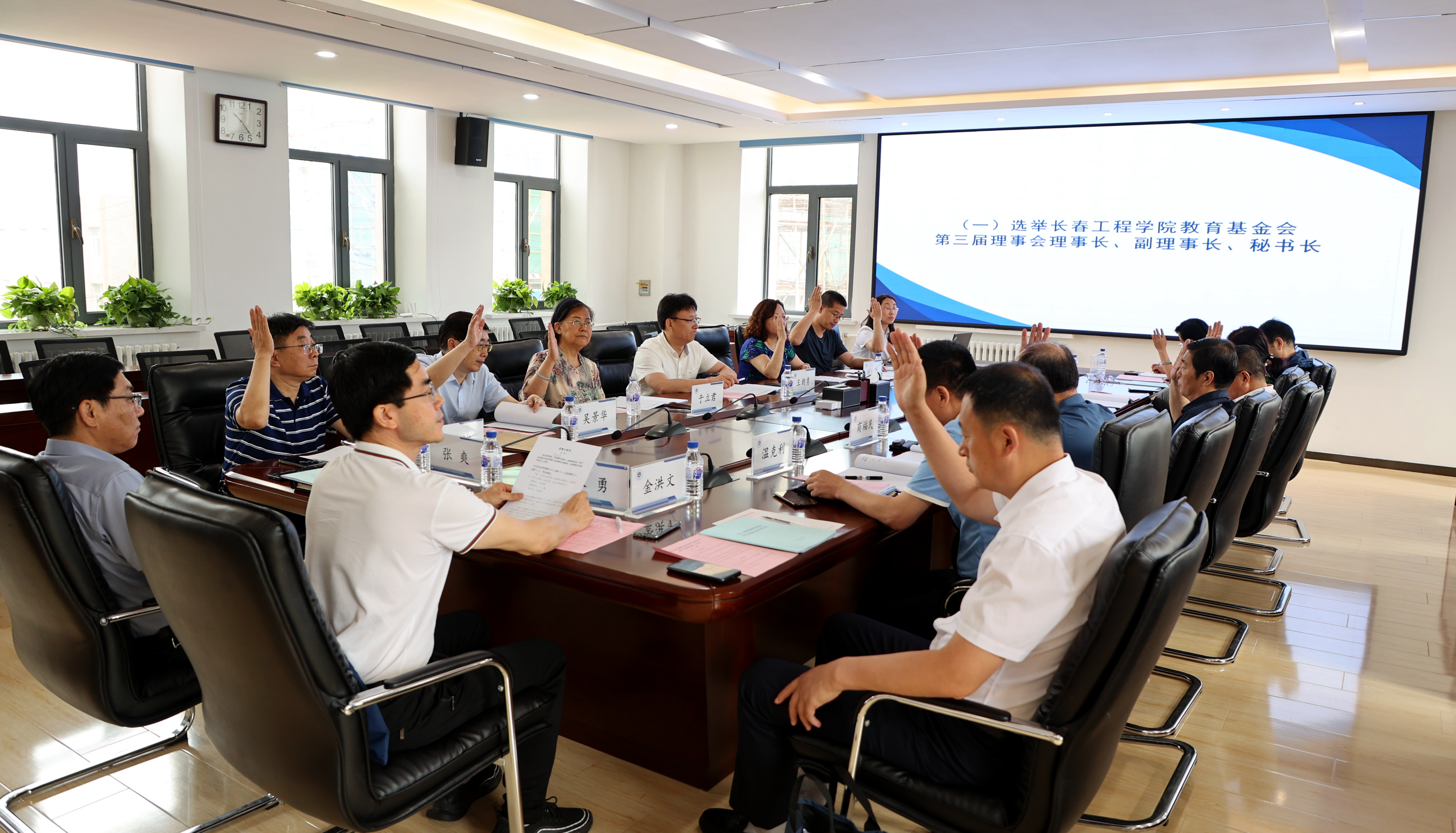 换届会议后,教育基金会第三届理事会第一次会议召开,会议选举时红梅同志为第三届理事会理事长,于淼同志为副理事长,石函玉同志为秘书长。