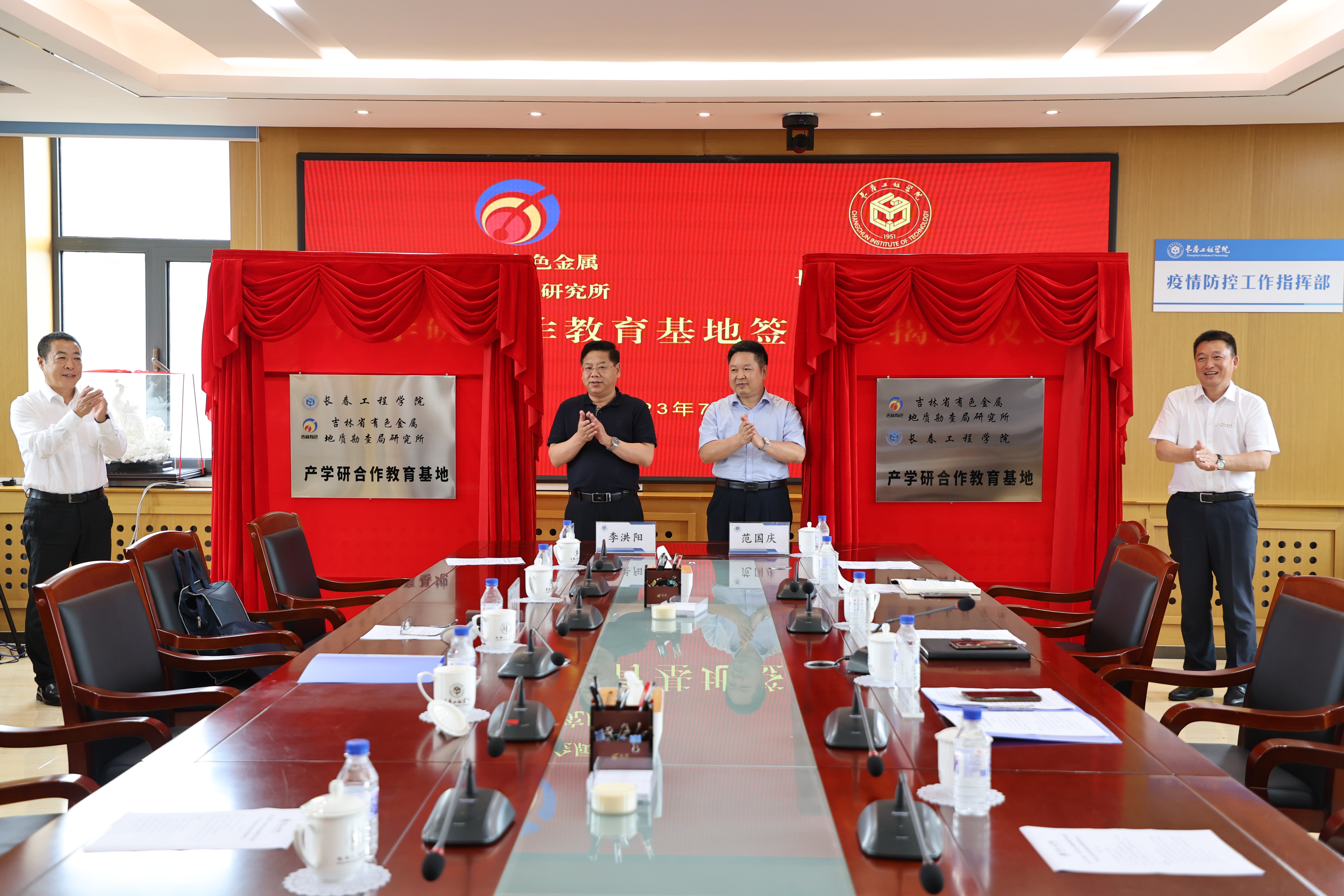 压球手机在线官网领导陈权、张邦成,吉林省有色金属地质勘查局领导刘子军、李春成共同为“产学研合作教育基地”揭牌。