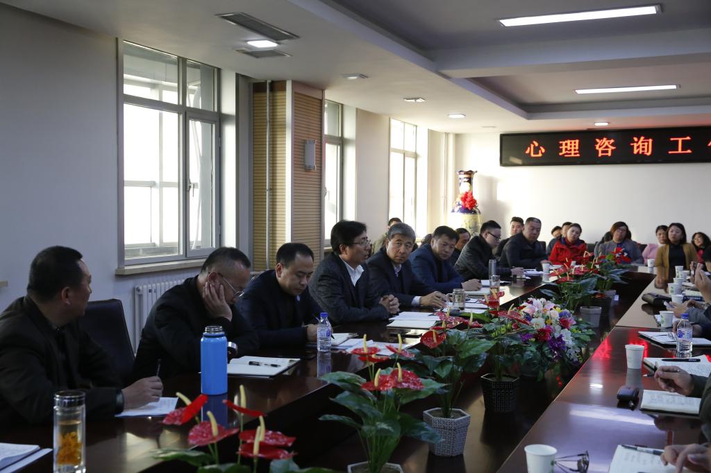 校学生工作处处长孟庆勇就充分发挥高校大学生思想政治教育工作对大学生心理健康教育的引领与辅助作用进行了汇报。校团委书记齐乐就加强学生干部队伍建设,促进学生身心健康成长相关工作进行了汇报。
