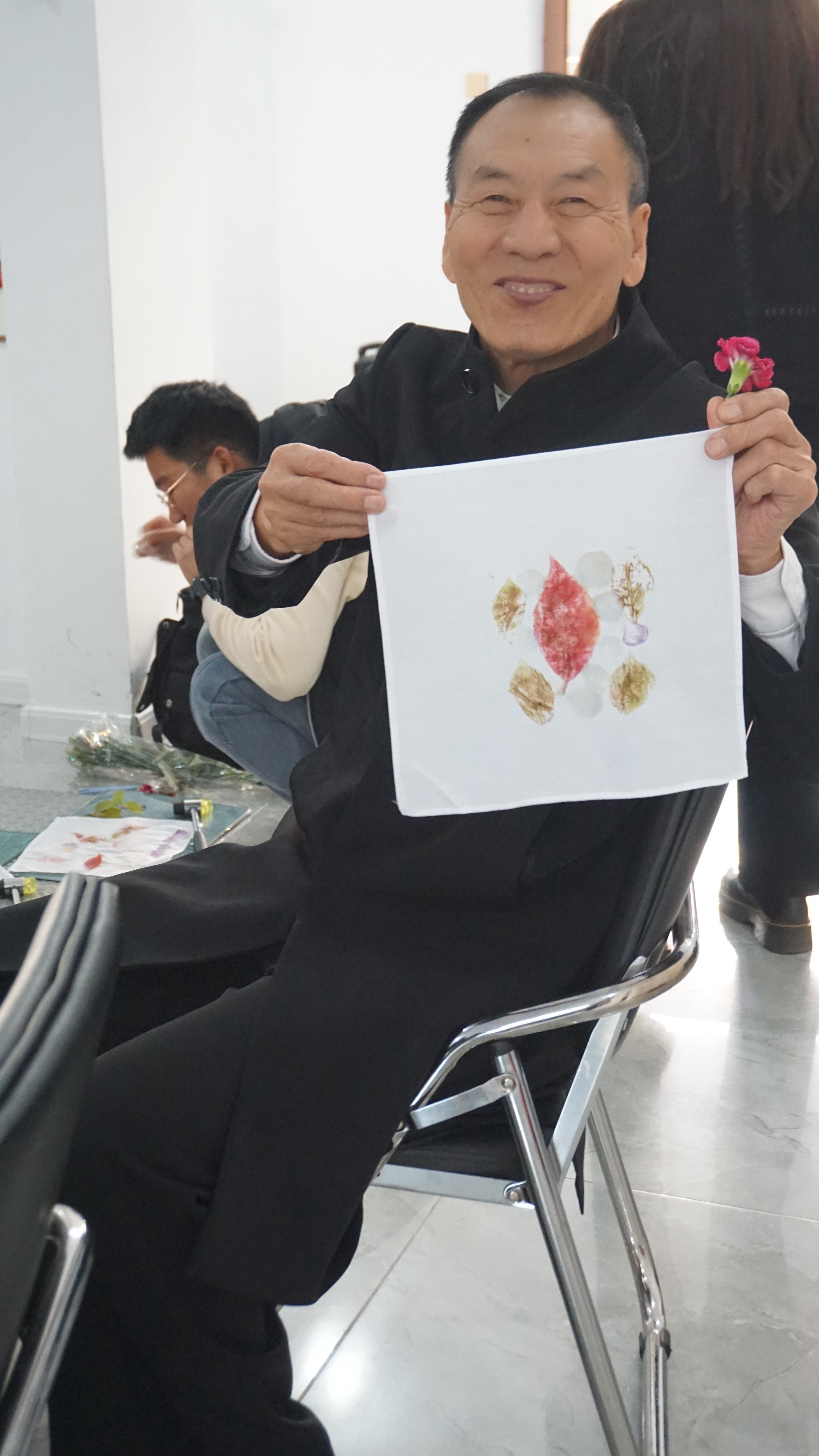 制作结束后,参加活动的爷爷、奶奶们举着各具特色的植物拓染作品,脸上洋溢着喜悦。通过此次活动,老年人们感受到了传统文化的魅力,进一步认识非遗、了解非遗,也在学习和实践中获得了快乐,真正做到“老有所学、老有所乐”。