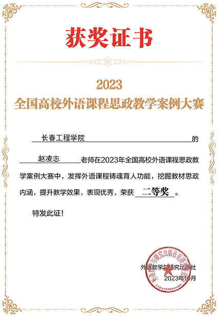近日,全国高校外语课程思政教学案例大赛圆满落下帷幕。我校外国语学院教师赵凌志的参赛案例荣获二等奖,徐佳老师的参赛案例荣获三等奖。