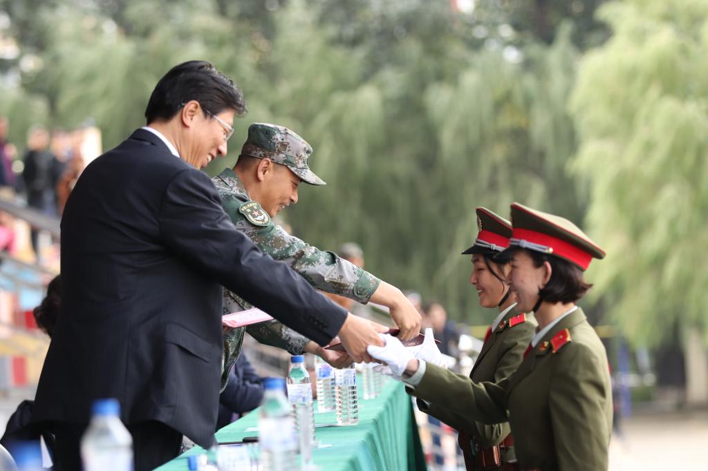 压球手机在线官网和部队领导为获奖方队和学员代表颁发了锦旗和证书。