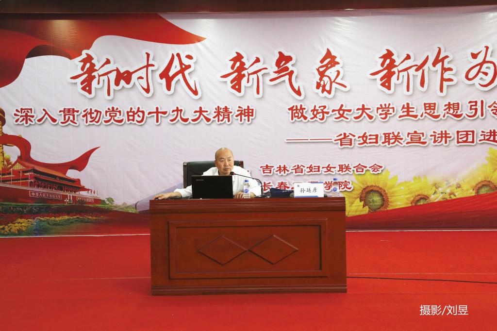 “女大学生如何防范及遇险自救”由宣讲团专家、吉林警察学院治安系主任孙廷彦教授主讲。孙教授介绍了当前我省治安形势、针对女大学生诈骗行为及种类、女大学生防范案例分析以及防范对策四个方面内容。他用生动的语言、真实的案例为我校女大学生做了一场精彩的安全教育课,引导女大学生自尊自爱自立自强,加强女性自我保护意识,做好防范自救对策。