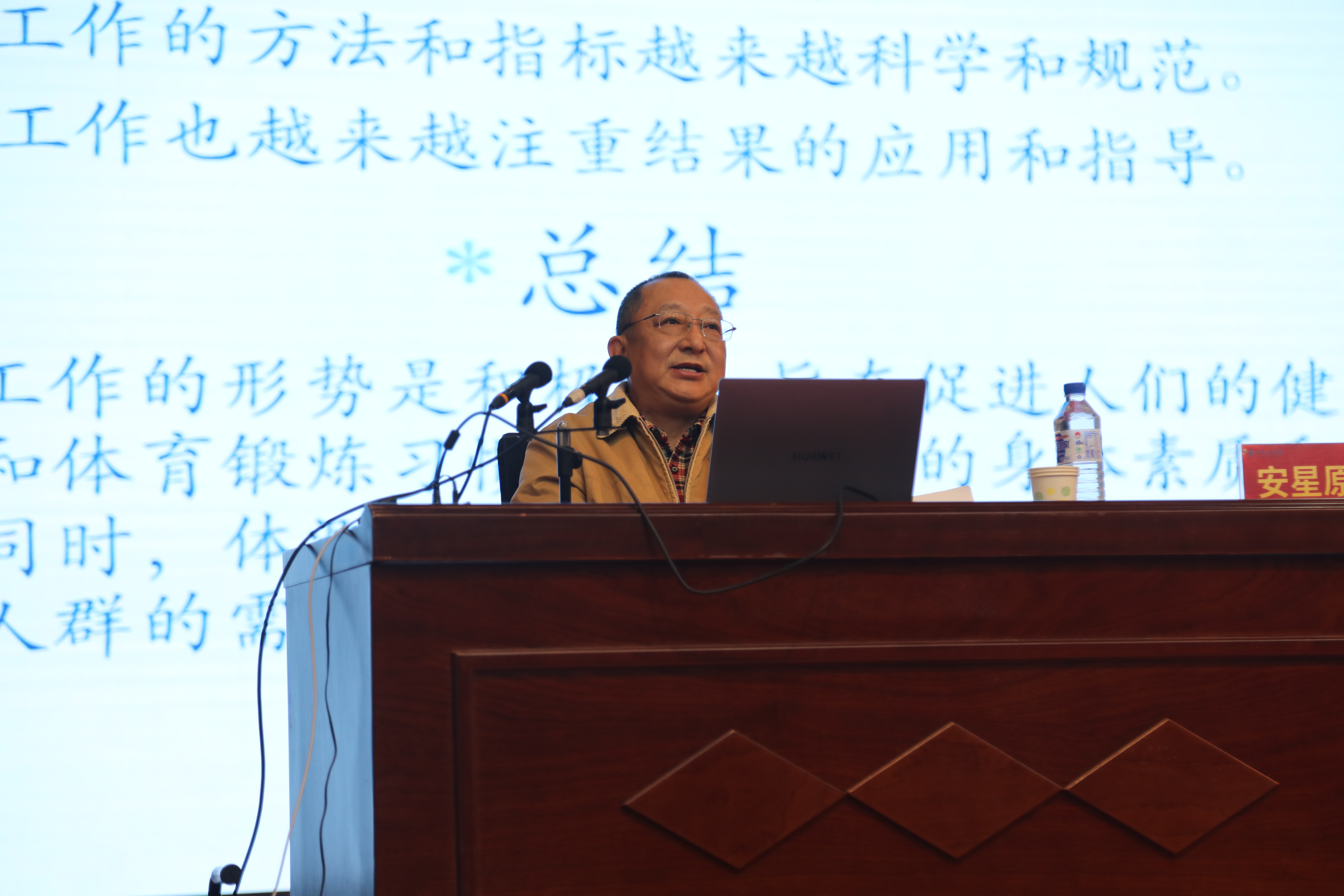 在讲座中,安星原教授详细解读了我国现阶段高校体质测试的政策及《国家学生体质健康标准》各个项目测试方法,让师生们更加清晰地了解测试的流程和要求。同时,安星原教授还分享了许多日常生活中简易而实用的锻炼方法和技巧。