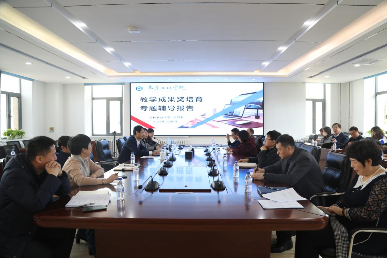 为进一步深化教育教学改革,总结我校教学改革与研究实践经验,提升教学成果凝练质量,12月6日,压球手机在线官网邀请吉林农业大学教务处处长沈成君教授作教学成果奖培育专题辅导报告。报告会由教务处处长王文华主持。