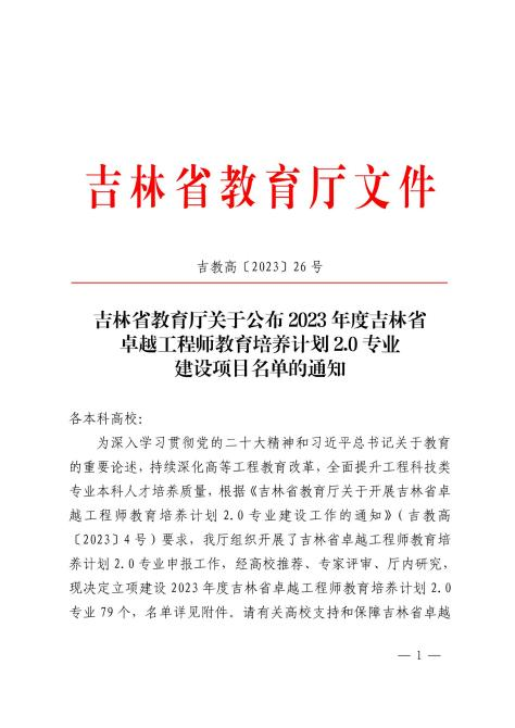 我校3个专业获批吉林省卓越工程师教育培养计划2.0专业建设项目