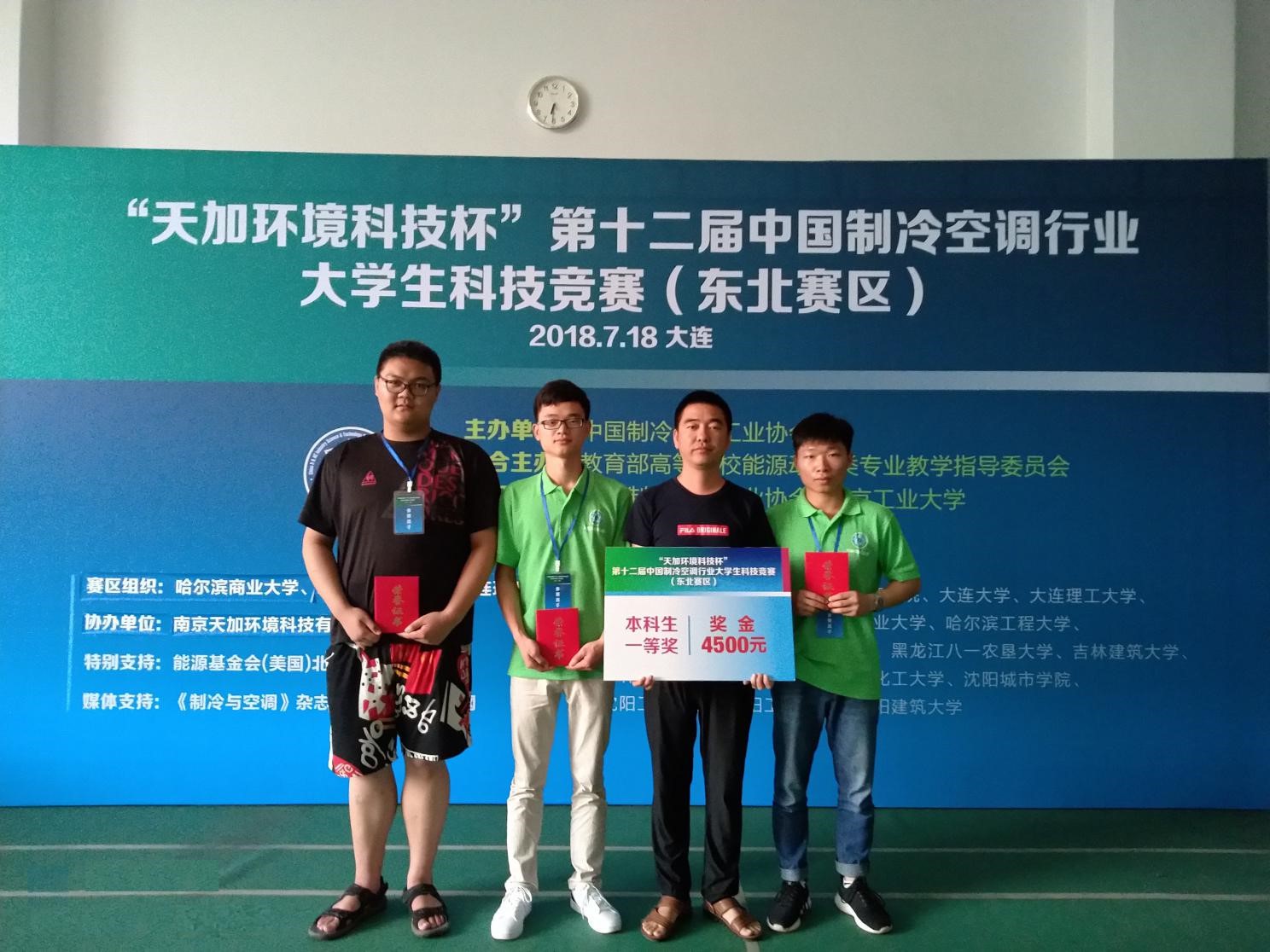 我校学生荣获第十二届中国制冷空调行业大学生科技竞赛(东北赛区)一等奖