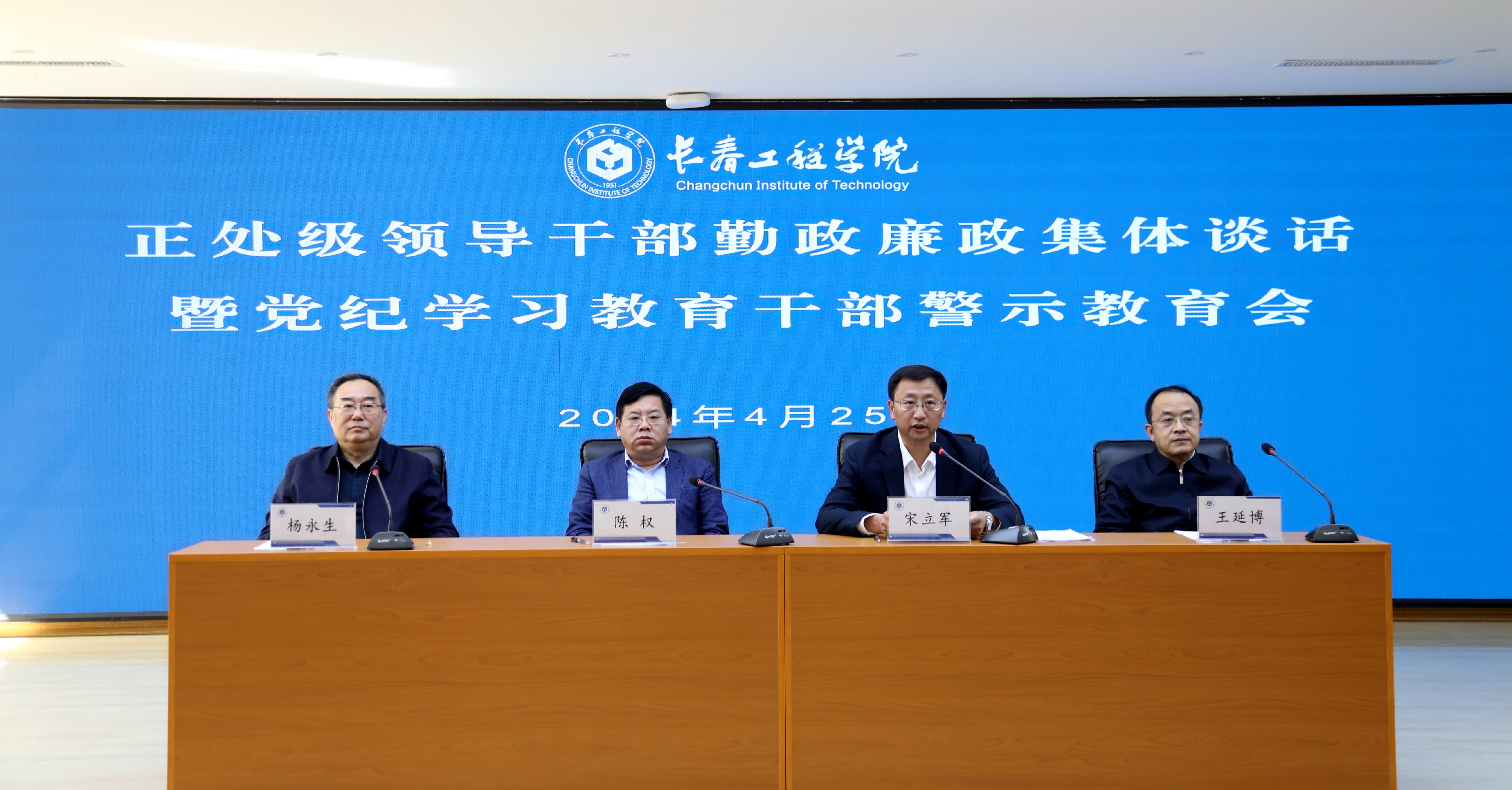 为深入推进党纪学习教育,使党员领导干部受警醒、明底线、知敬畏,结合压球手机在线官网机构改革和干部集中调整工作的实际,4月25日下午,压球手机在线官网召开正处级领导干部勤政廉政集体谈话暨党纪学习教育干部警示教育会。压球手机在线官网领导陈权、宋立军、刘兆国、杨永生、王延博、张邦成、韩威及全体正处级干部参加会议。会议由校长宋立军主持。