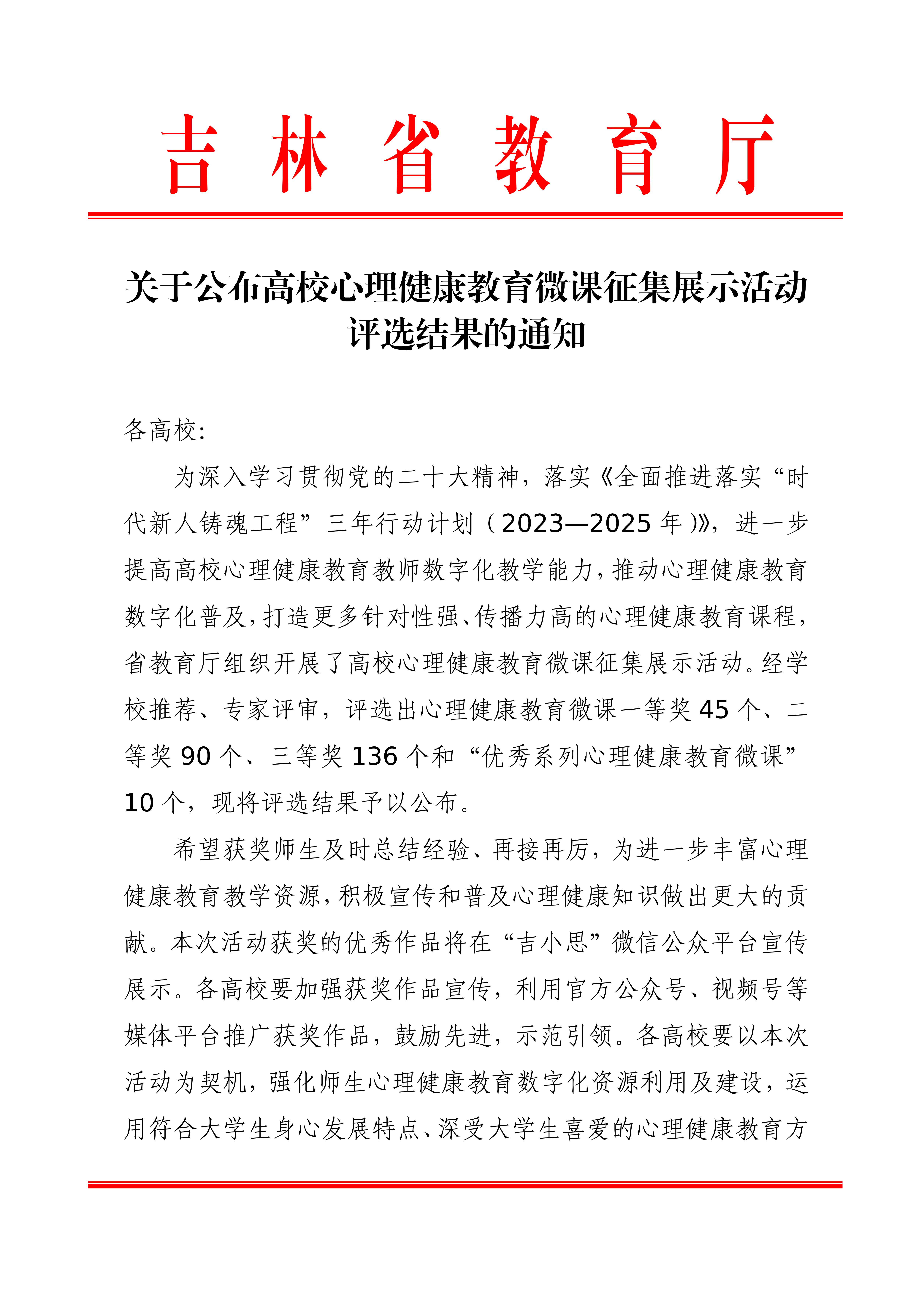 我校教师在吉林省首届高校心理健康教育微课大赛中获佳绩