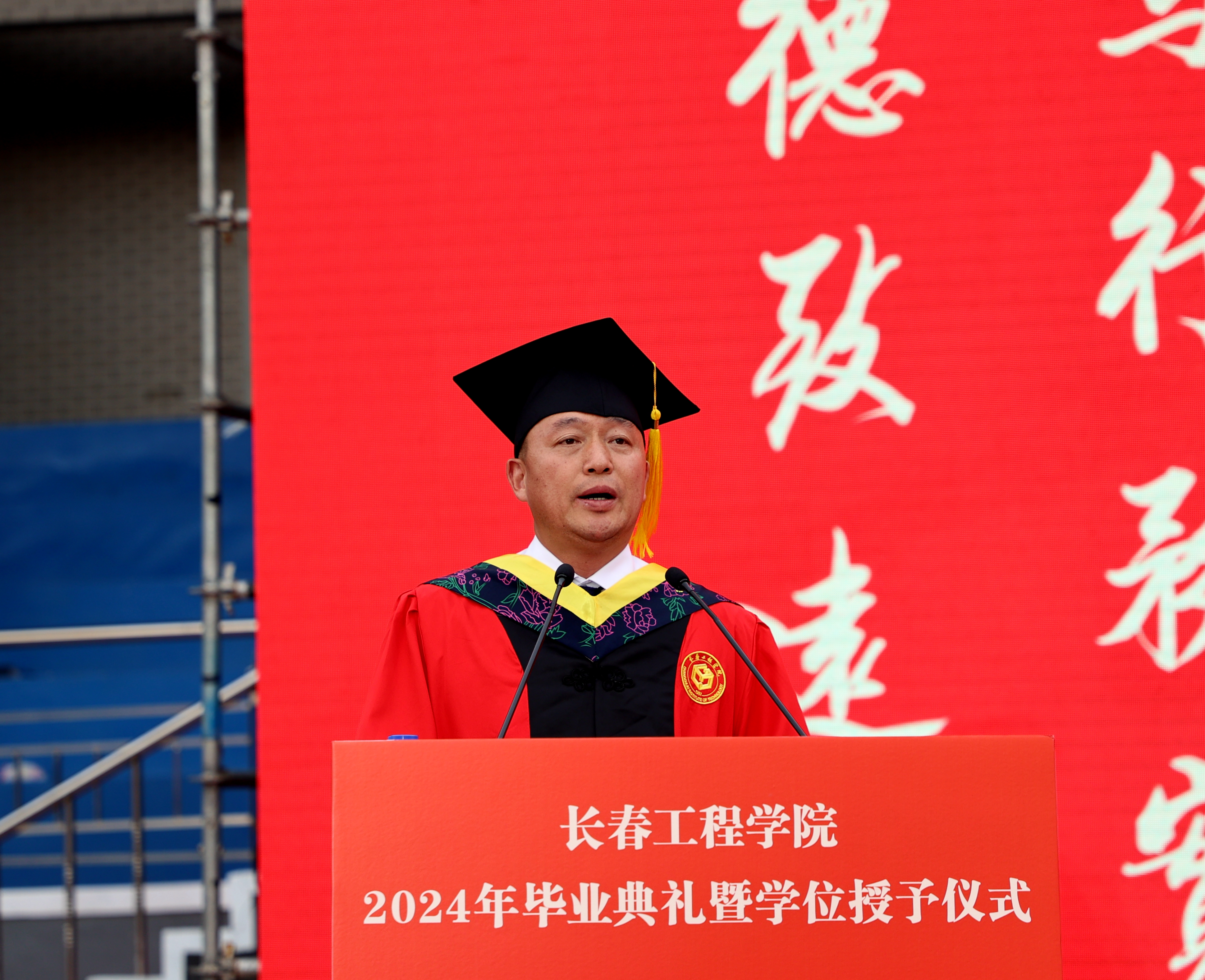 他向毕业生同学们提出三点希望,一要坚持“立德”为先,始终做一名德才兼备之人。百行以德为首,做人以德为本。希望未来的你们,能带着长工程这份温暖、包容和情怀,做一个思想有厚度、眼界有高度、人品有温度、专业有深度的优秀人才。二要坚持“立志”为基,始终做一名志存高远之人。立志,方能成才,立大志,才能行稳致远。希望同学们将年华汇进时代旋律,把青春融入祖国山河,在复兴征程中找准定位、找到舞台。三要坚持“立业”为要,始终做一名勤勉敬业之人。当前,面对人工智能技术的快速发展,越来越多的工作将被机器取代,这就需要大家始终持有一颗好奇心,主动学习新事物、新知识和新技能,主动适应新技术的发展,善于运用各类工具,不断增强自身的竞争力,努力在激烈的竞争中立于不败之地。