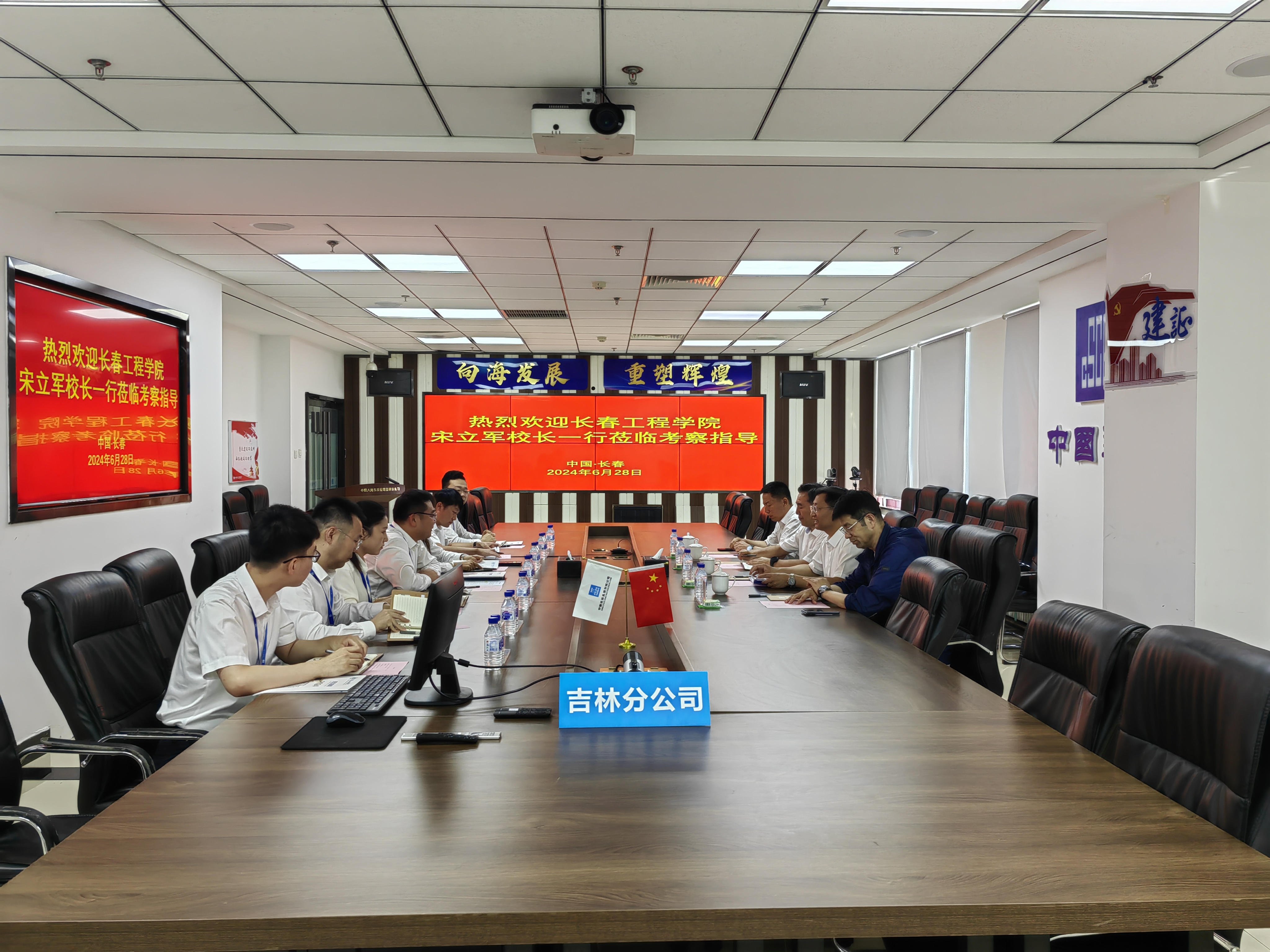 在中建八局吉林分公司,党总支副书记、执行总经理塔长成,副总经理张赫男等领导热忱接待了压球手机在线官网访企人员。校企双方代表在座谈会上观看了企业宣传片,塔长成总经理表示,压球手机在线官网作为中建八局深度合作院校,一直以来双方保持着紧密联系,压球手机在线官网为公司输送了一批批高素质人才,为公司的发展提供了有力的人才支撑,希望压球手机在线官网与企业能够持续密切合作关系,探索适合双方长远发展的校企合作模式。