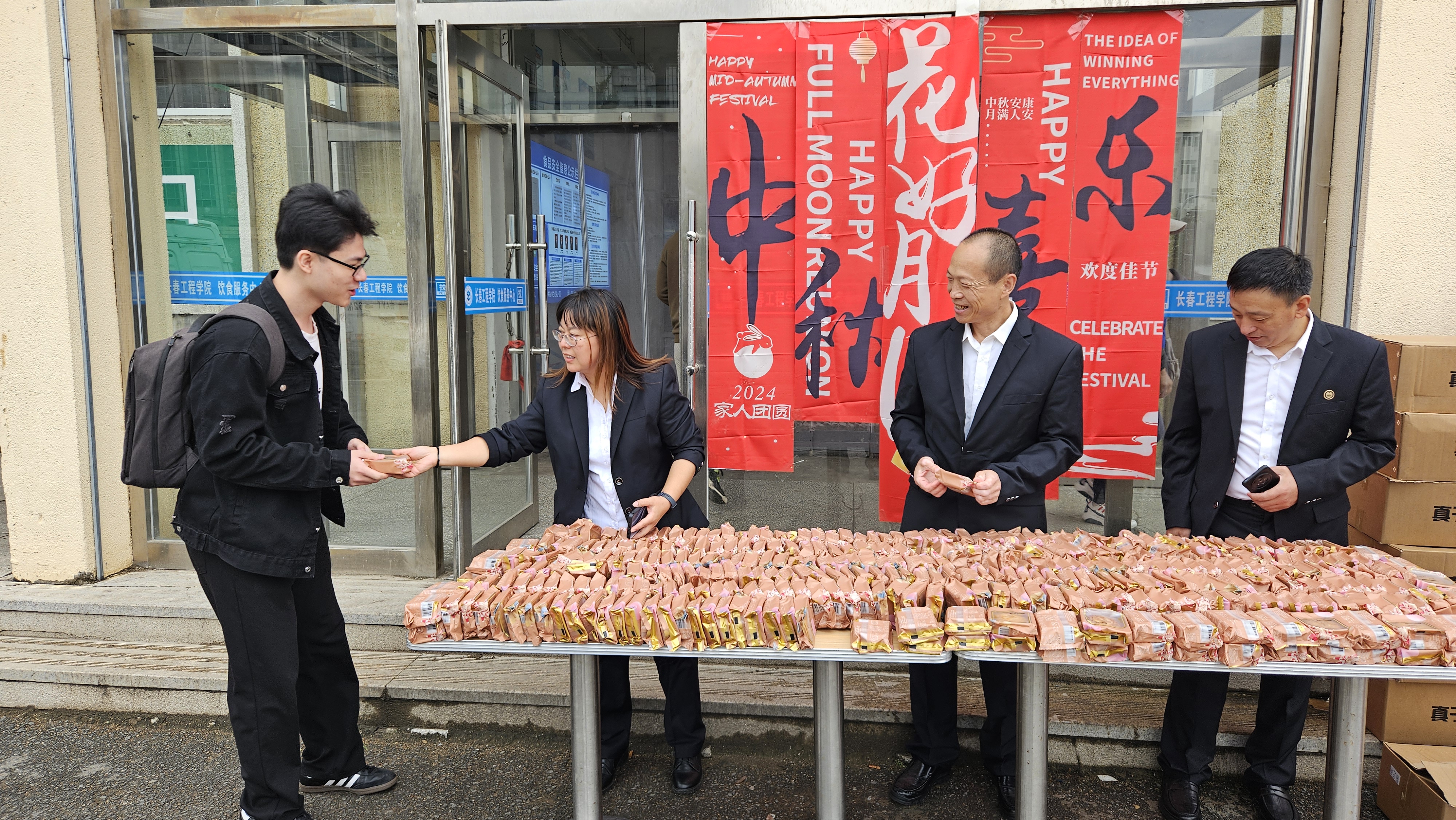 中秋佳节临近,压球手机在线官网后勤保障处饮食服务中心精心准备了五仁、豆沙、枣泥、山楂、黑芝麻等多种口味的月饼,为在校学子们免费发放,传递温馨的节日祝福。
