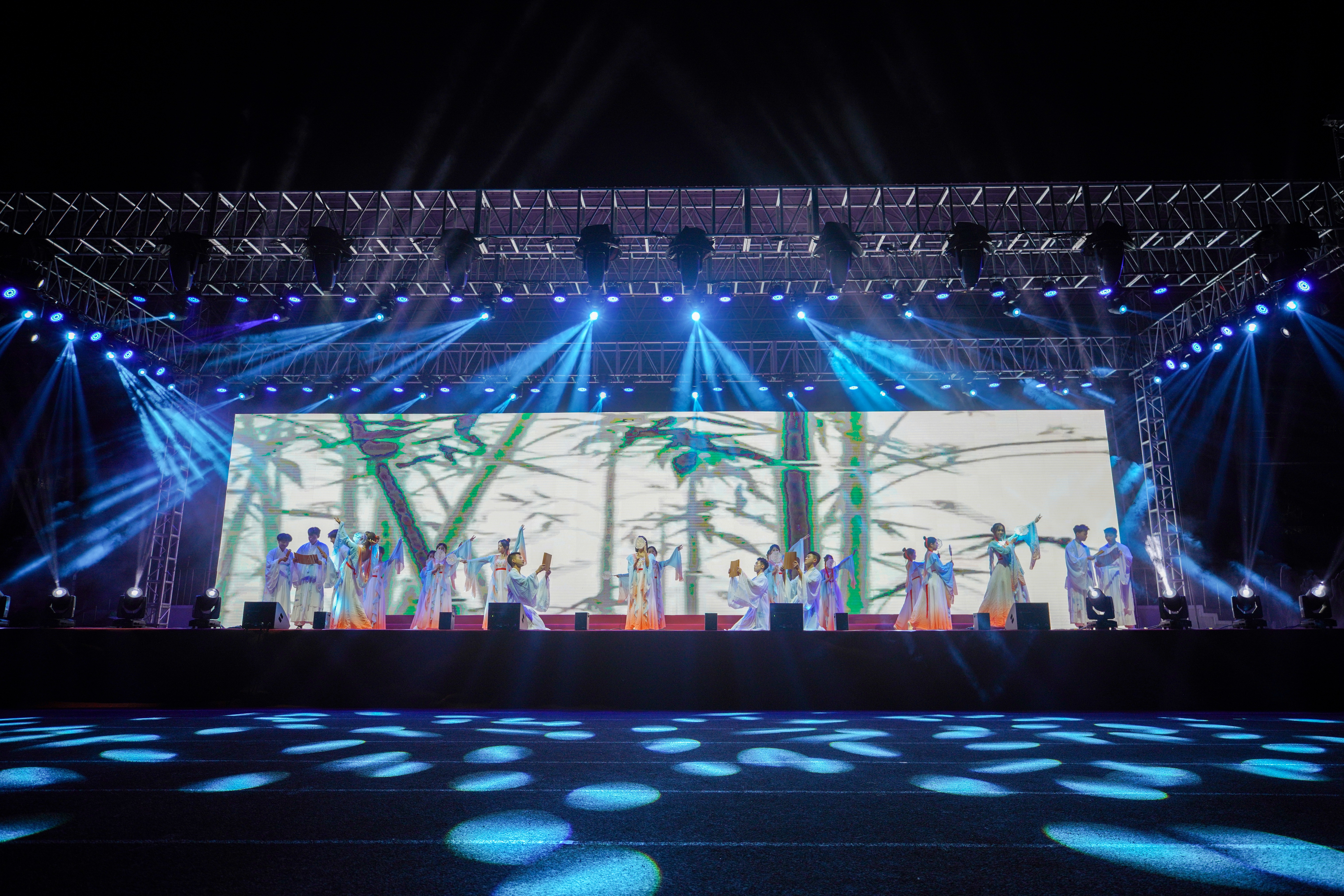 2024级全体新生辅导员和学生代表带来了暖场节目歌曲快闪《拥入怀抱》。在热烈的氛围中,文艺汇演正式拉开帷幕。此次汇演分为“青青子衿 志怀家国”“百舸争流 奋楫者先”“灼灼风华 逐梦向阳”“冉冉向新 执光开路”4个篇章,12个精彩节目涵盖了歌舞、朗诵、时装秀、融合性表演等多种形式。