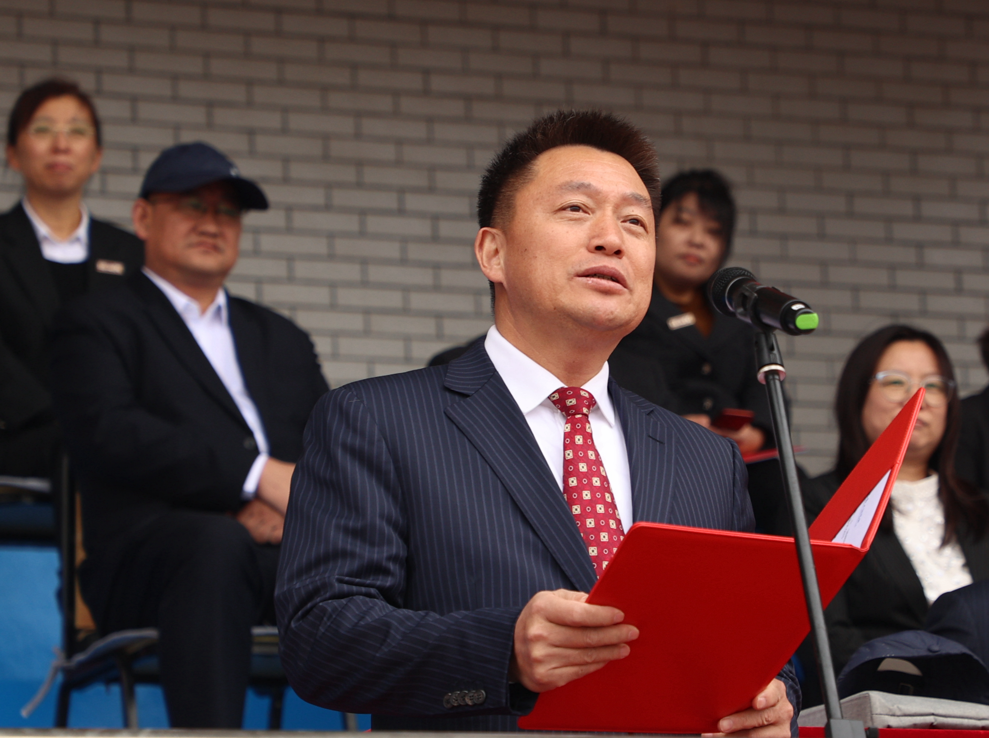 副校长张邦成致开幕词,他表示,本届运动会的举办,为同学们的体育竞技再一次提供了交流场所,为推进体育文化提供了交融的平台,这是全体工程学子精神风貌和综合素质的一次集中展示,更是对各参赛单位团队意识、竞争意识、拼搏精神和观众队伍文明程度的检验。希望各代表队、全体运动员、裁判员,严格遵守竞赛规则,认真履行职责和义务,以使命在肩、奋斗有我的精神壮志,奋勇争先、勇创佳绩,赛出竞技水平,赛出道德风尚,赛出团结友谊,赛出个性风采!