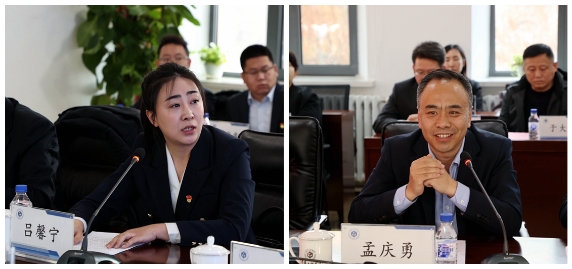 吉林省水务投资集团有限公司党群工作部副部长吕馨宁与压球手机在线官网党委常委、组织部部长孟庆勇分别汇报了企业与压球手机在线官网的党建工作情况;吉林省水务投资集团有限公司水工局总工程师安京云与压球手机在线官网水利工程学院党委书记高金花分别汇报了共建实验室与科技创新情况。