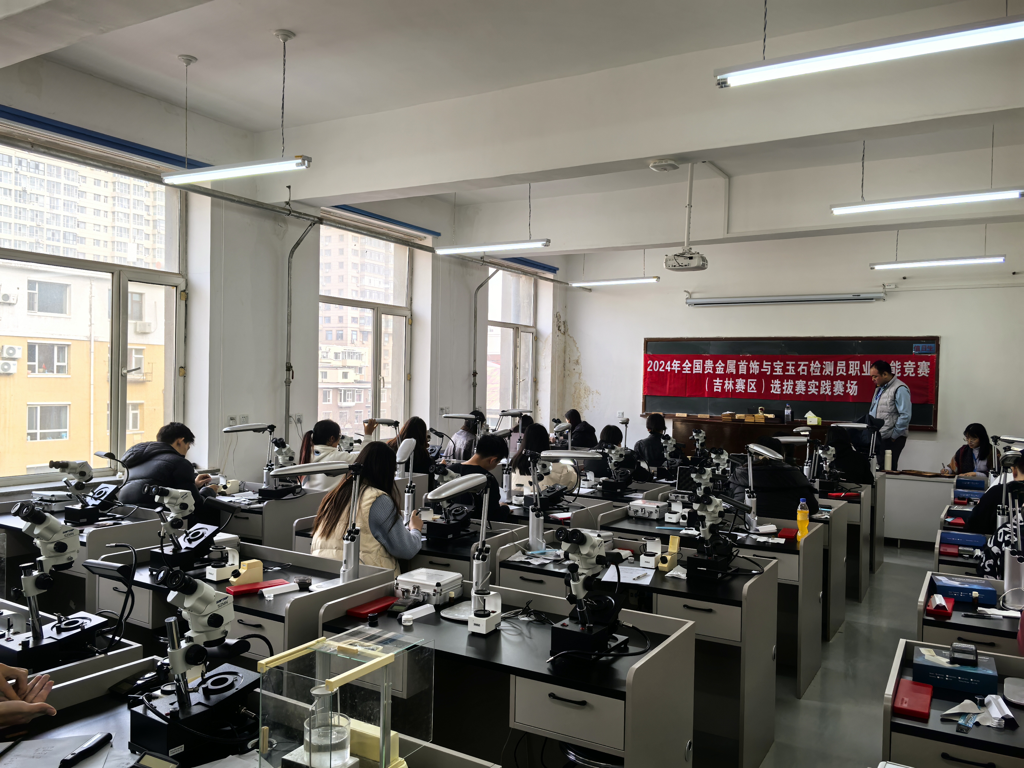 全国贵金属首饰与宝玉石检测员职业技能竞赛是由国家人力资源社会保障部发起、中国轻工珠宝首饰中心主办的全国大赛。此次吉林赛区选拔赛由我校、吉林省工程技术压球手机在线官网、吉林省珠宝玉石首饰行业协会共同承办。赛事当天,吉林省工程技术压球手机在线官网也同步设置了比赛现场。