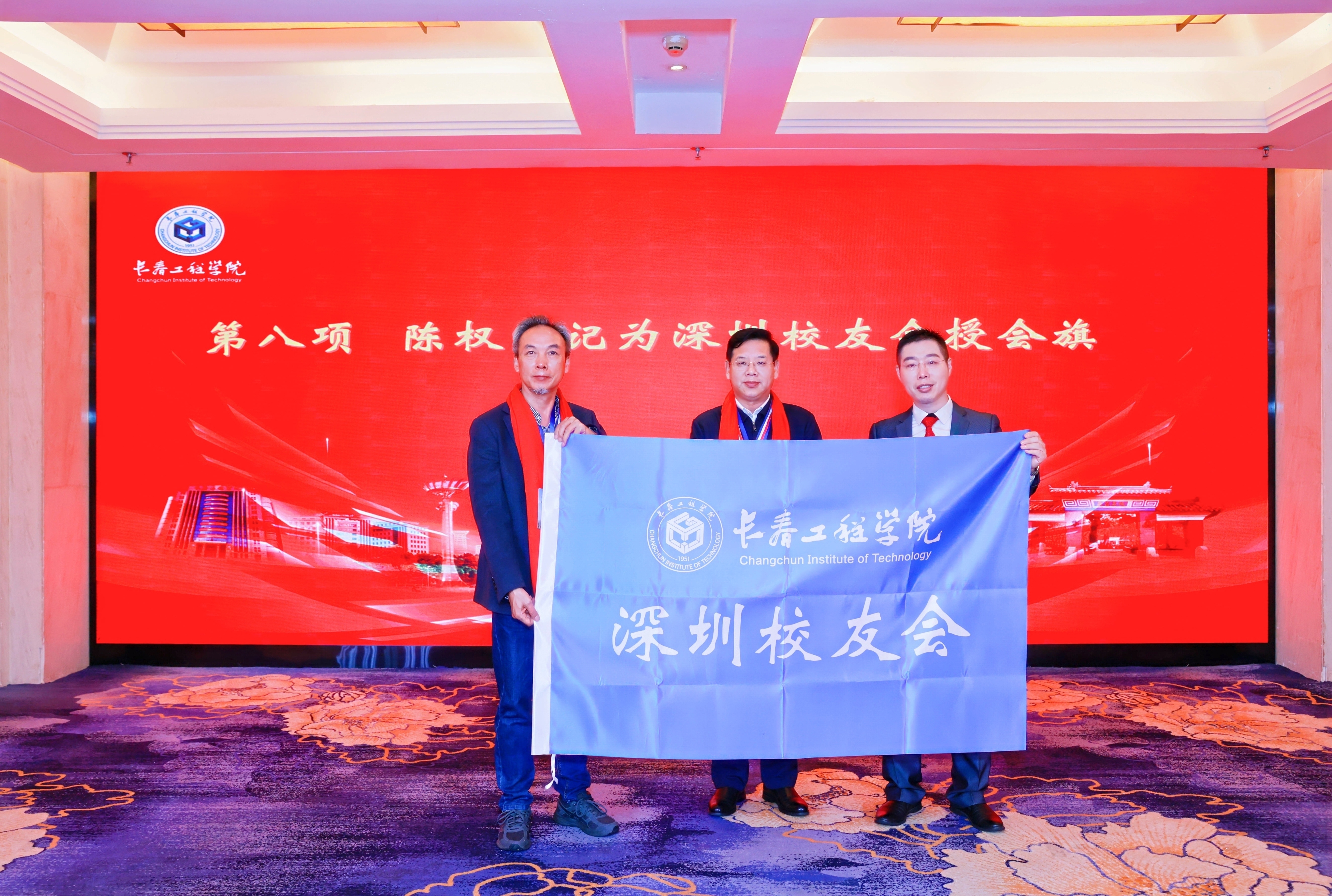 陈权书记向深圳校友会授会旗并致辞。他代表母校和校友总会向深圳校友会的成立表示热烈祝贺,并提出了四点殷切希望,一是希望深圳校友会建成一个最具创情的校友会,能够在广聚四方英才、广纳四方文化、广融四方习惯的平台上,成为团结校友,沟通感情的组织;二是希望深圳校友会建成一个最具创新的校友会,能够建成一个广大校友互帮互助,研究学术,交流思想,探究未来,谋划、推动事业不断向前发展的平台,成为最有创新方式的组织;三是希望深圳校友会建成一个最具创富的校友会,能够通过校帮引领行帮、带动商帮、提升乡帮,实现帮帮相助,互联互通,通过引领的作用,加强与各地校友会的沟通联络,实现感情共有、资源共享、优势共得、财富共聚;四是希望深圳校友会建成一个最具创未来的校友会,每位校友的未来都是可期的,希望深圳校友会带领深圳校友们共创美好的未来。最后他祝福深圳校友会在会长及理事会的带领下越办越好。
