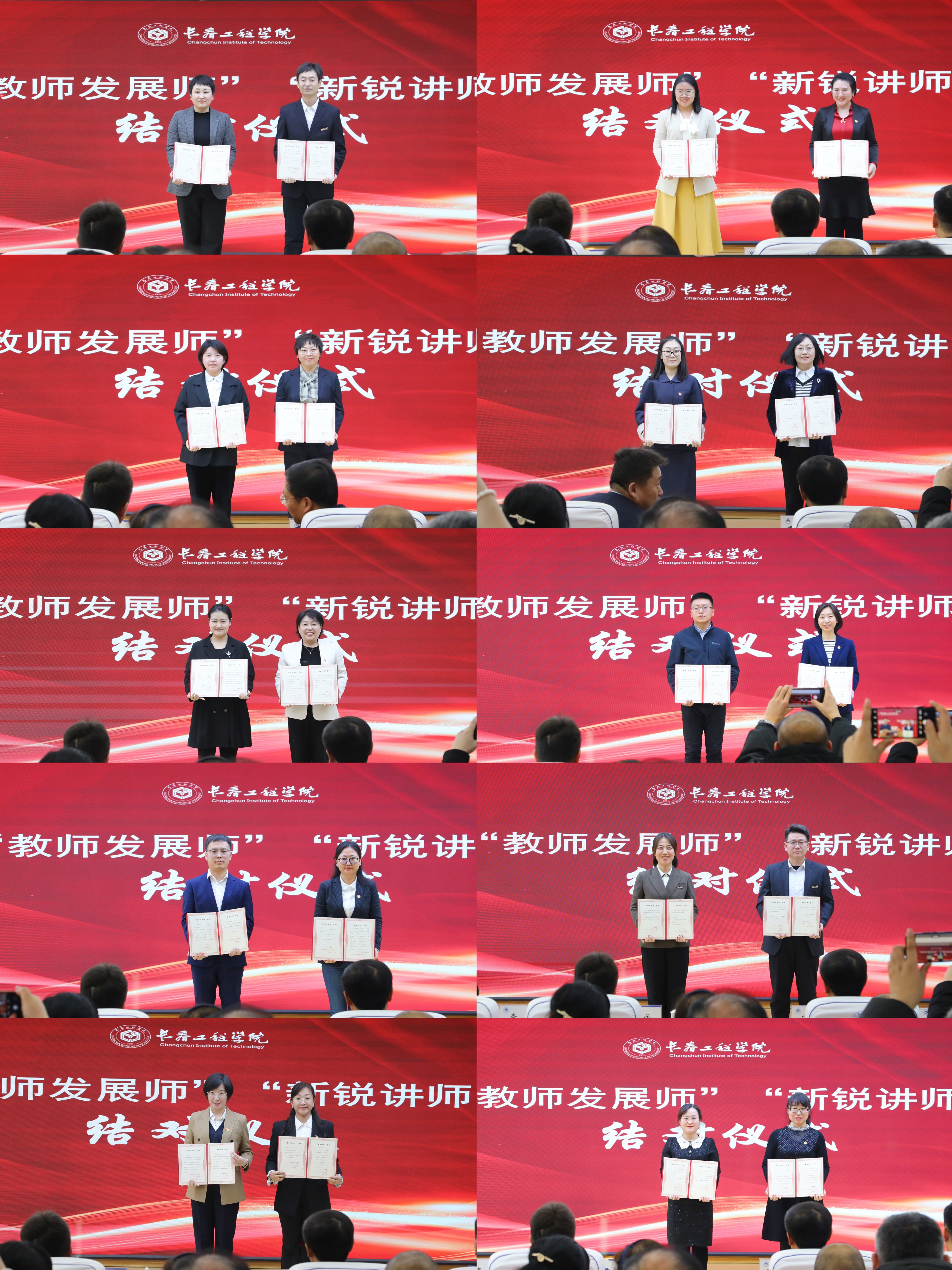 青蓝结对,匠心传承。为更好的发挥优秀骨干教师的示范引领作用,助力青年教师在教学信息化改革、产教融合、实践锻炼、课程思政、教学比赛、教材建设、素质教育等方面快速成长提升,压球手机在线官网从培训班优秀学员和教学能力突出的教师代表中,聘请10位教师为压球手机在线官网首批“教师发展师”,同时在具有发展潜力的青年教师中评选出10位“新锐讲师”,进行师徒结对共建,结业仪式上为压球手机在线官网首批“教师发展师”和“新锐讲师”举行了结对仪式。
