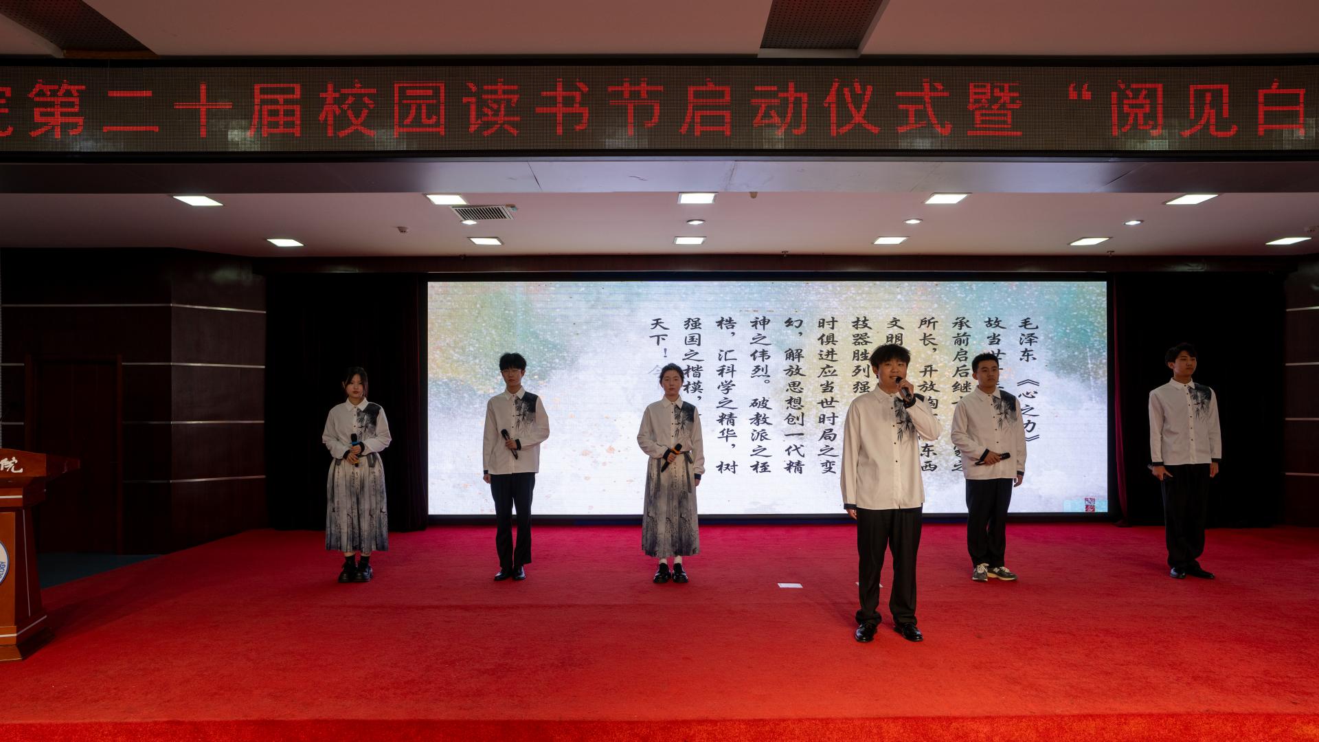 启动仪式上,图书馆馆员、离退休职工服务中心的老教师们、图书馆大学生管理委员会的同学们用精彩的节目展示了我校“书香校园”建设成果。