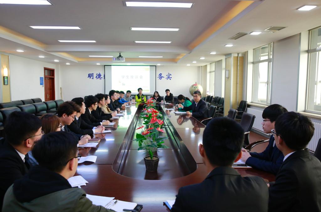 明德致远献良策,笃行务实促发展。4月18日,我校在第七教学楼九楼会议室召开学生座谈会,来自13个学院的20名学生代表参会。座谈会由党委副书记张冀男主持。