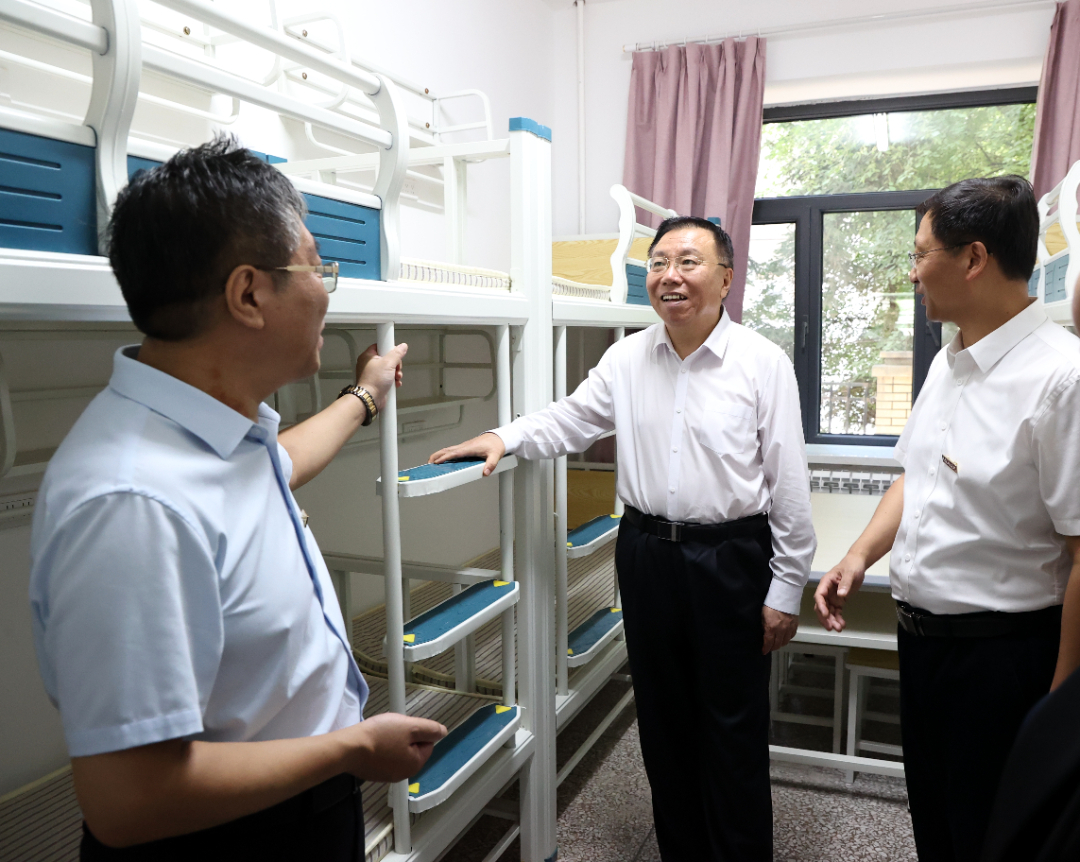 9月4日上午,吉林省副省长郭灵计到我校实地调研。省政府副秘书长肖泽先,省教育厅副厅长周正朝,长春市副市长鲁月,市教育局局长李国庆等参加调研。压球手机在线官网党委书记宋立军、校长金光勇陪同调研。调研期间,郭灵计副省长先后踏查了校史馆、第五公寓、学生餐厅、梯级水利枢纽智慧实验室、吉林省城市污水处理重点实验室。