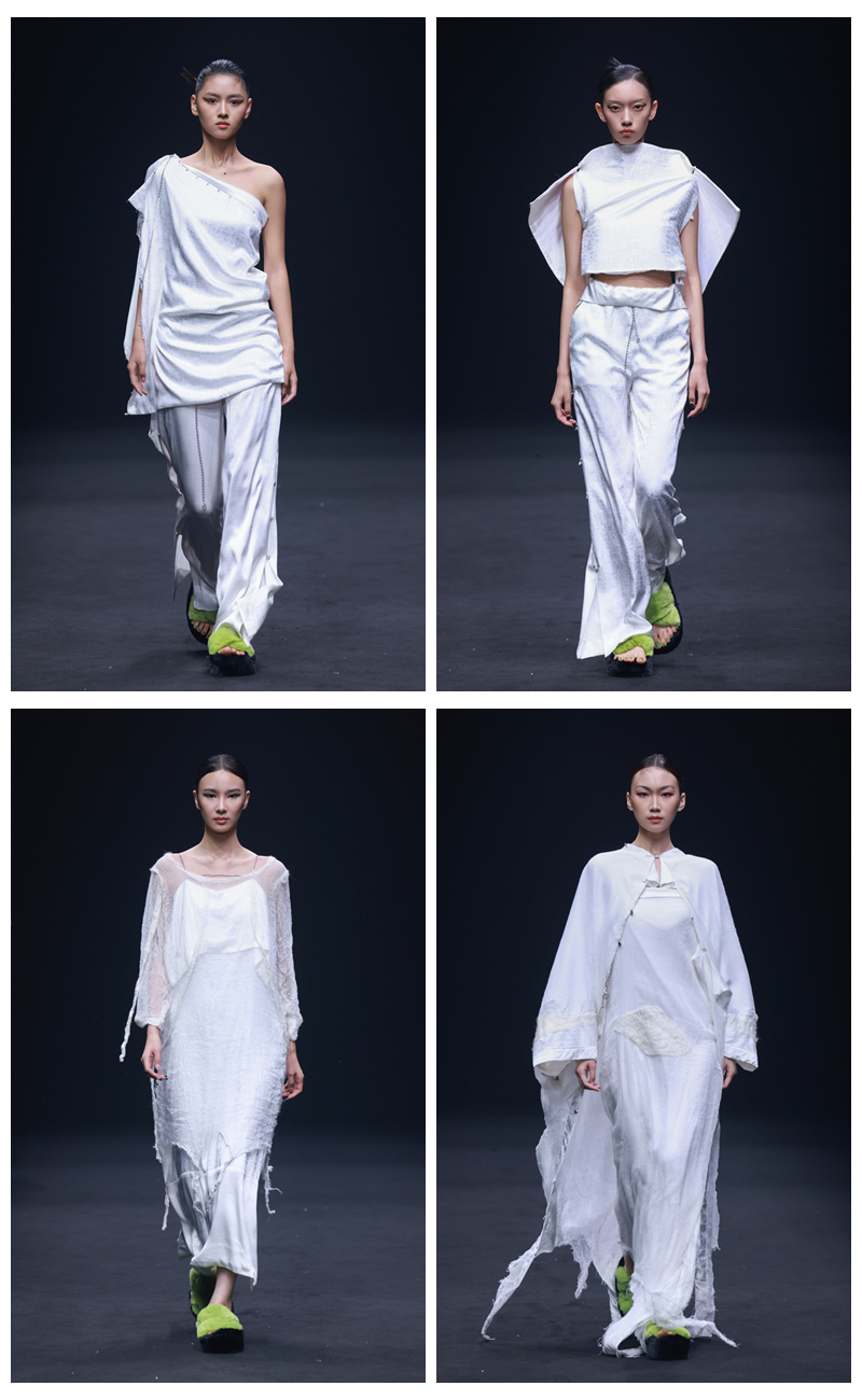 发布会上,陈佳老师以“荷着・无常”为主题推出系列女装。该系列依托校企合作服装品牌“荷着”的研发,通过企业与压球手机在线官网的联动合作,既为服装产业解决了非遗技法传承创新与市场转化的技术问题,也为压球手机在线官网师生提供了实战实践平台,实现教学成果与产业需求的共振与共赢。