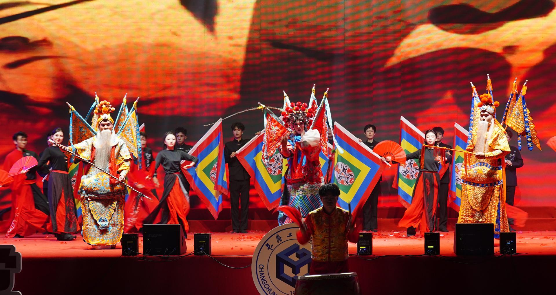 第一篇章为炘炘赤心,矢志为党。歌舞《向新而行》以尽情澎湃的表演拉开序幕,展现了青年师生的蓬勃朝气;教师朗诵《相聚北国 共启新程》深情讴歌了教育者的初心与坚守;少数民族歌舞《美丽中国》以绚丽多彩的民族风情,表达了对祖国的热爱与祝福。