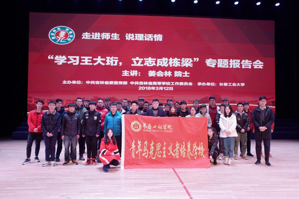 为认真落实省高校工委和省委宣传部“走进师生,说理话情”思想政治教育活动,深入实施青年马克思主义者培养工程,广泛开展“学习筑梦”行动,3月12日下午,我校50名青马学员来到长春工业大学大学生活动中心,听取了中国工程院院士姜会林教授作的专题报告。